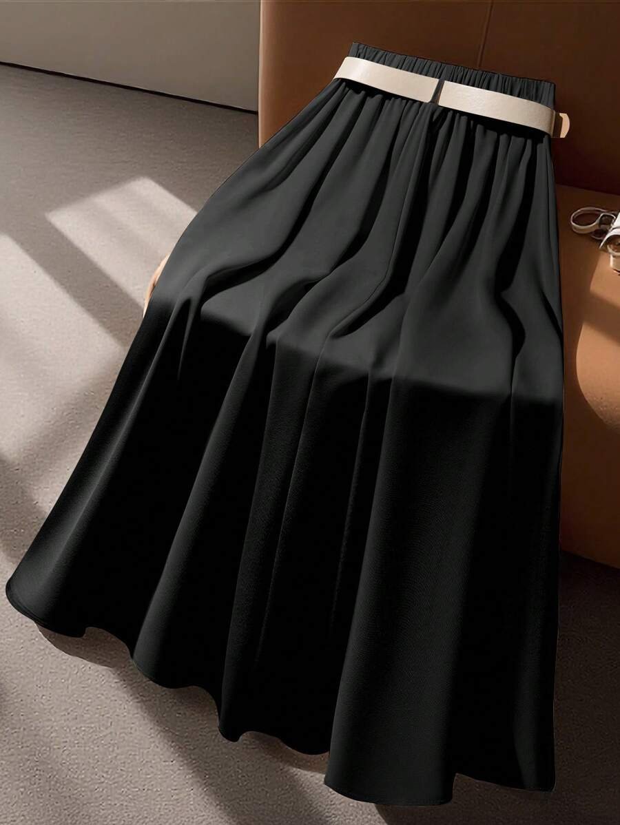 Falda larga y casual de oficina con cinturón de cintura