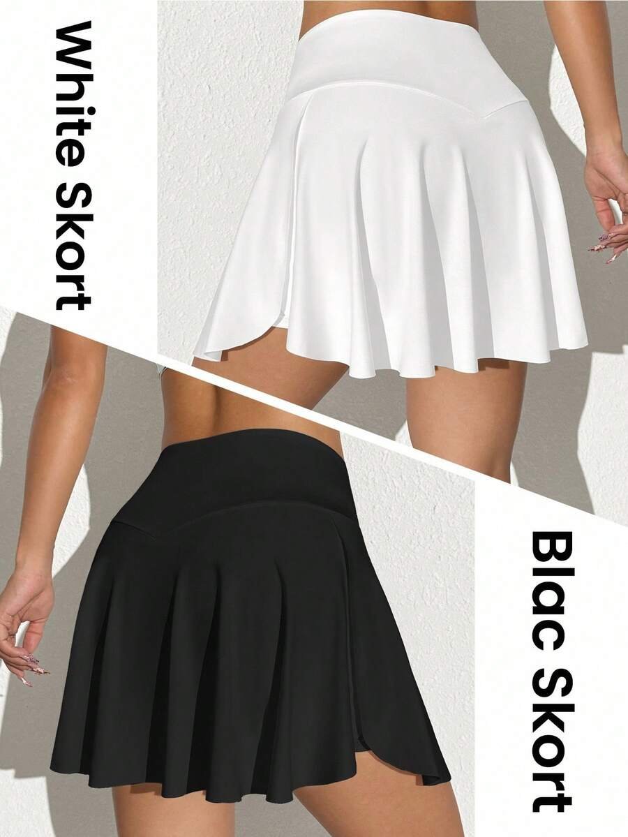 Falda pantalón con volantes en el bajo y bolsillos, de unicolor