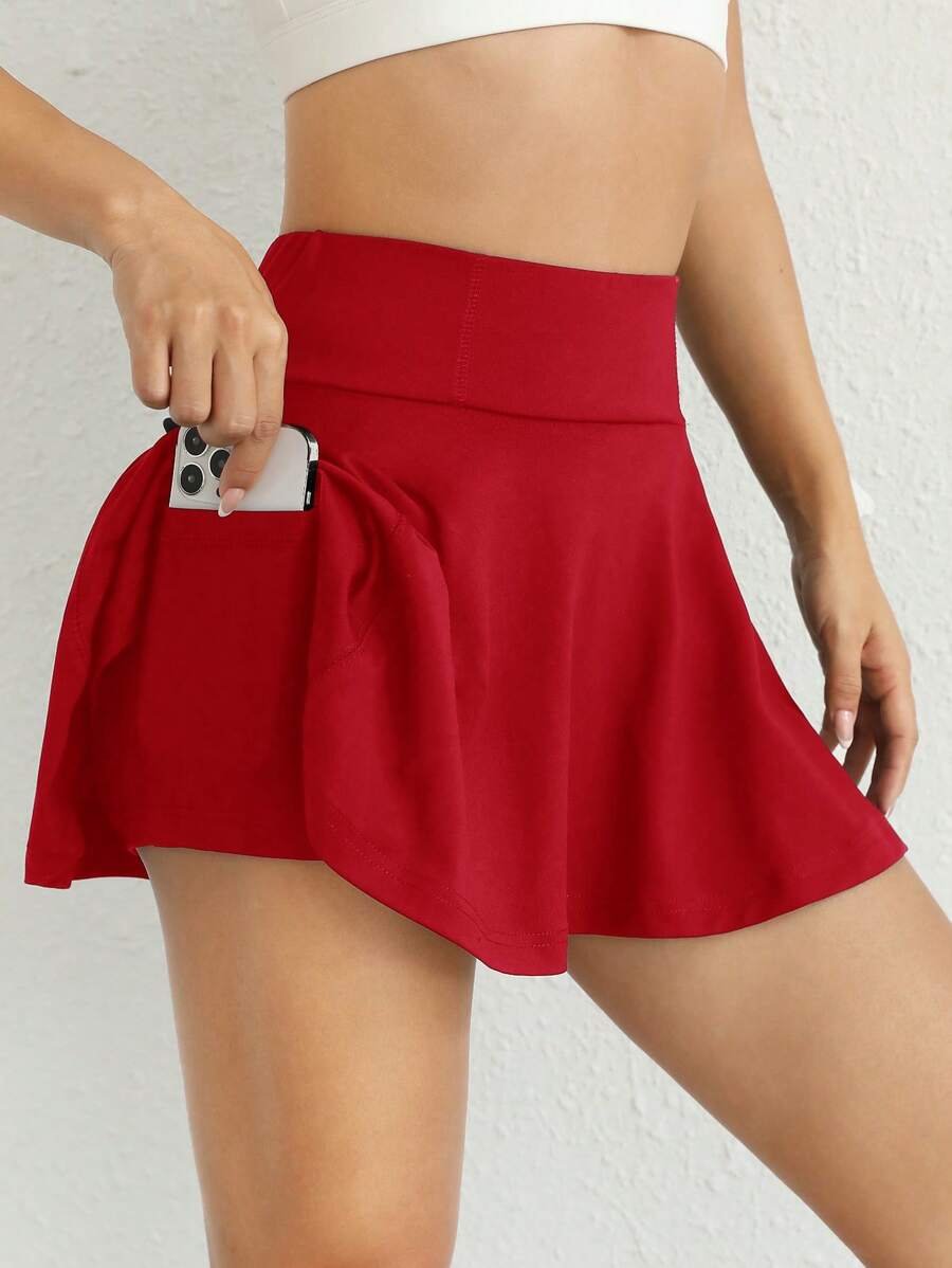 Falda pantalón deportiva de unicolor con bolsillo para teléfono