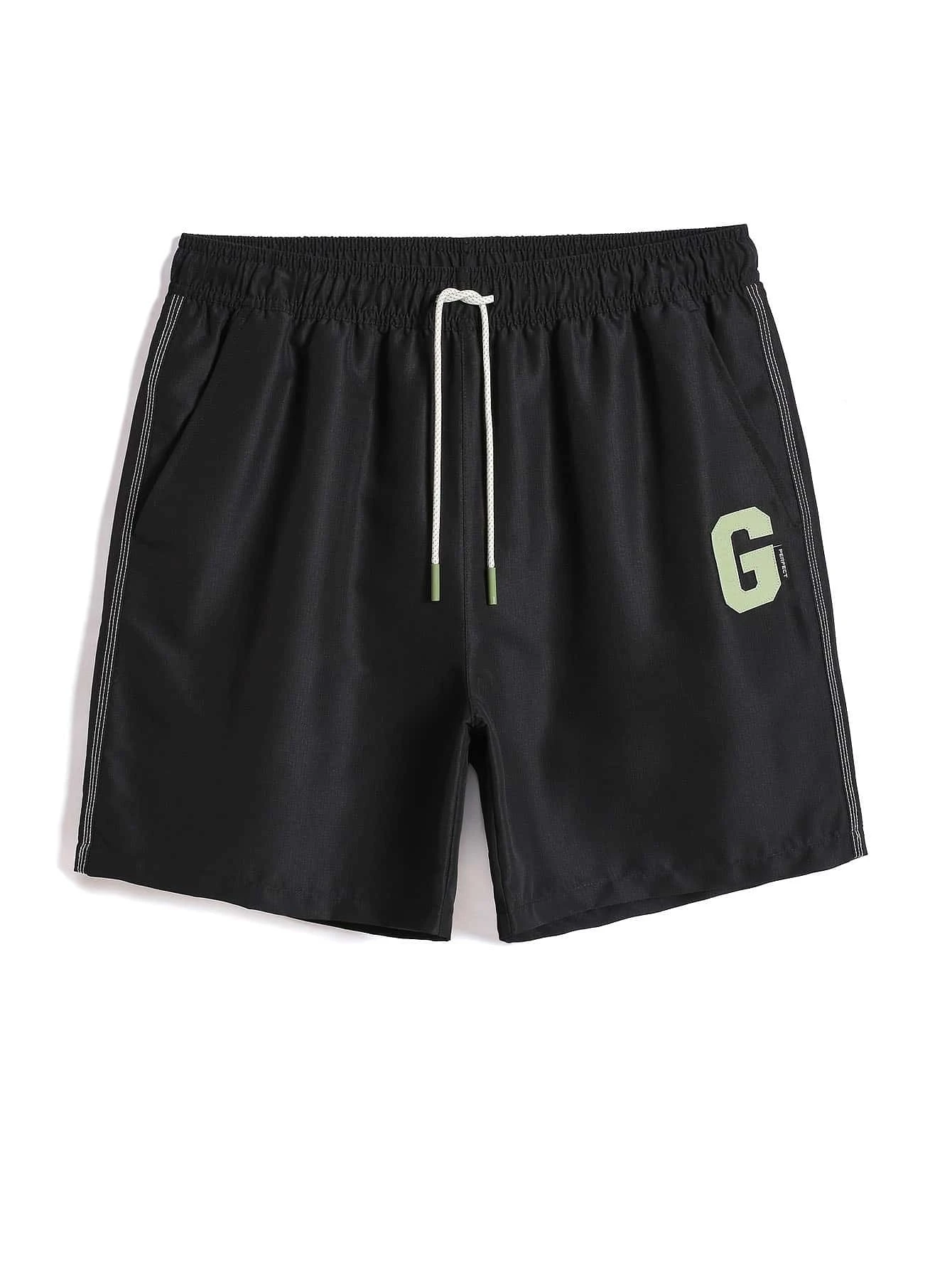 Hombres Shorts de natación con estampado de letra de cintura con cordón