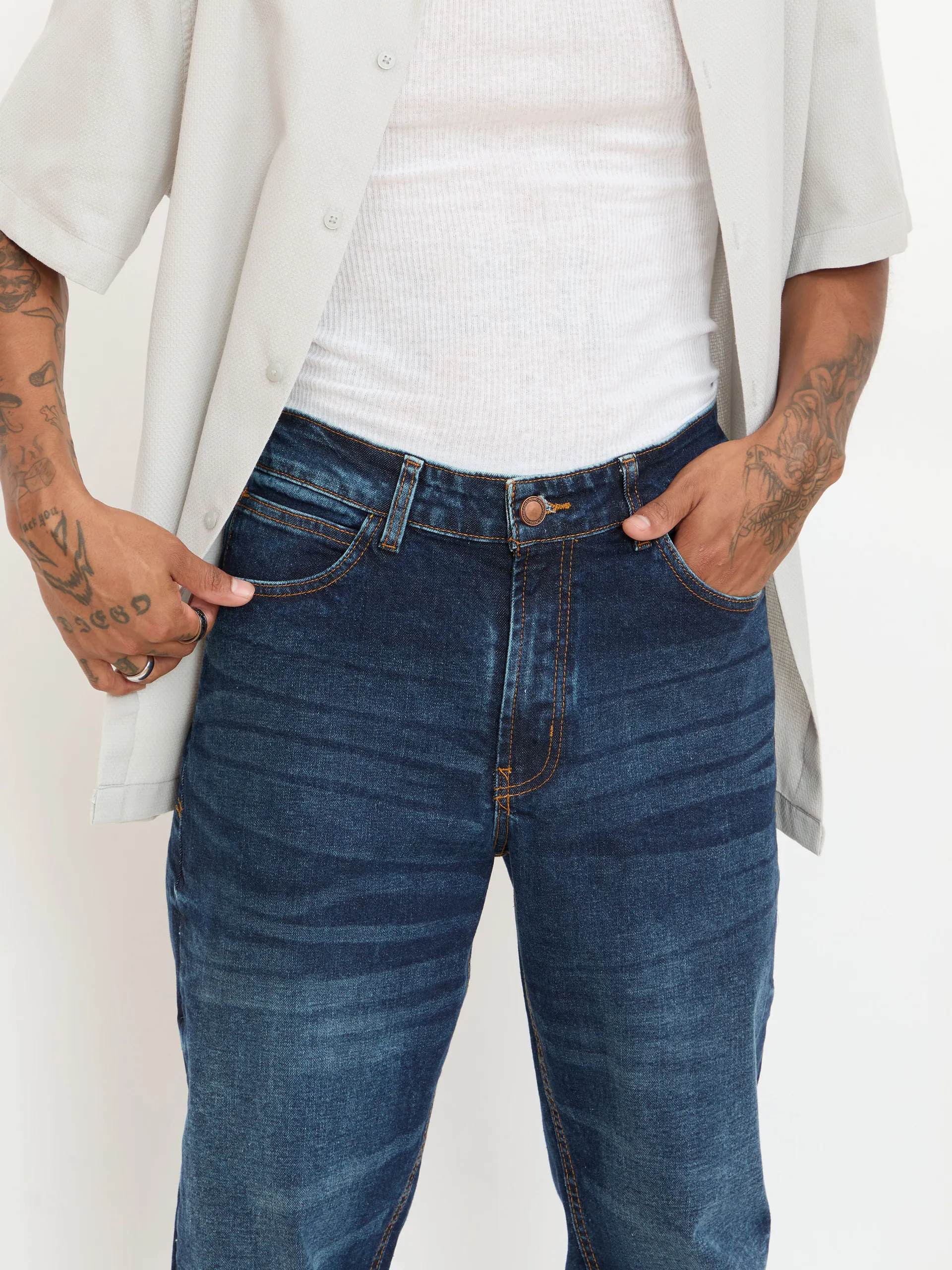 Jeans recto azul oscuro para hombre de mezclilla, cierre cremallera y botón. El Jeans perfecto que combina comodidad, durabilidad y tendencia.