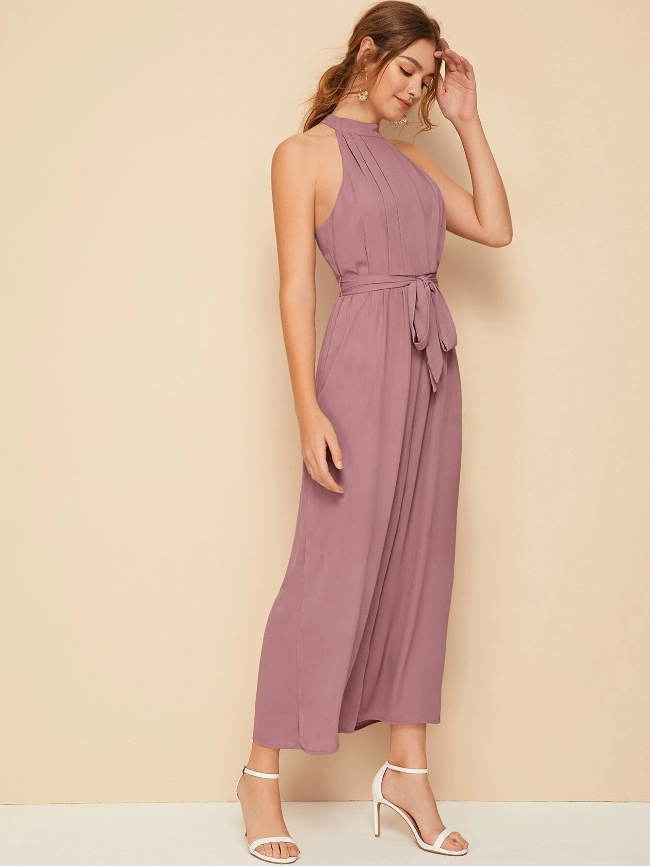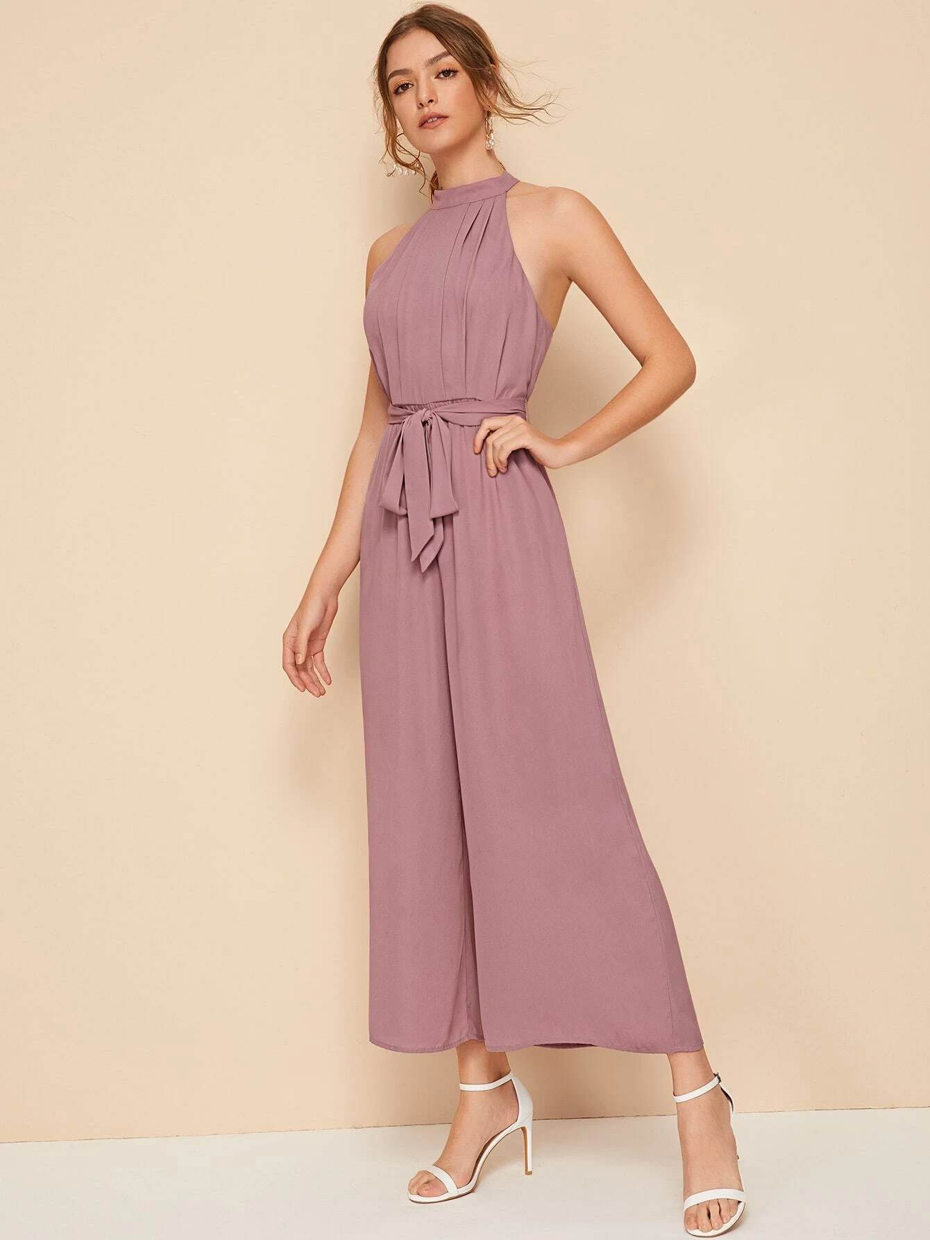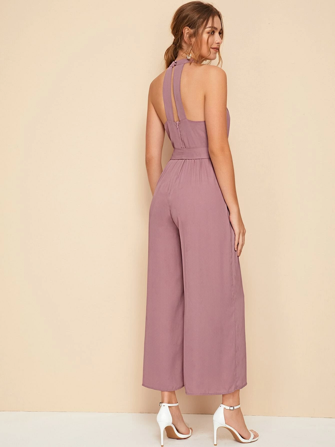 Jumpsuit palazzo con abertura trasera con cinturón halter