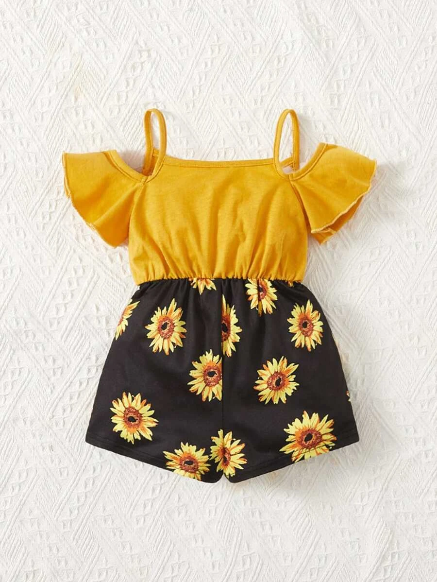 Mameluco De Hombros Descubiertos Con Estampado De Girasoles