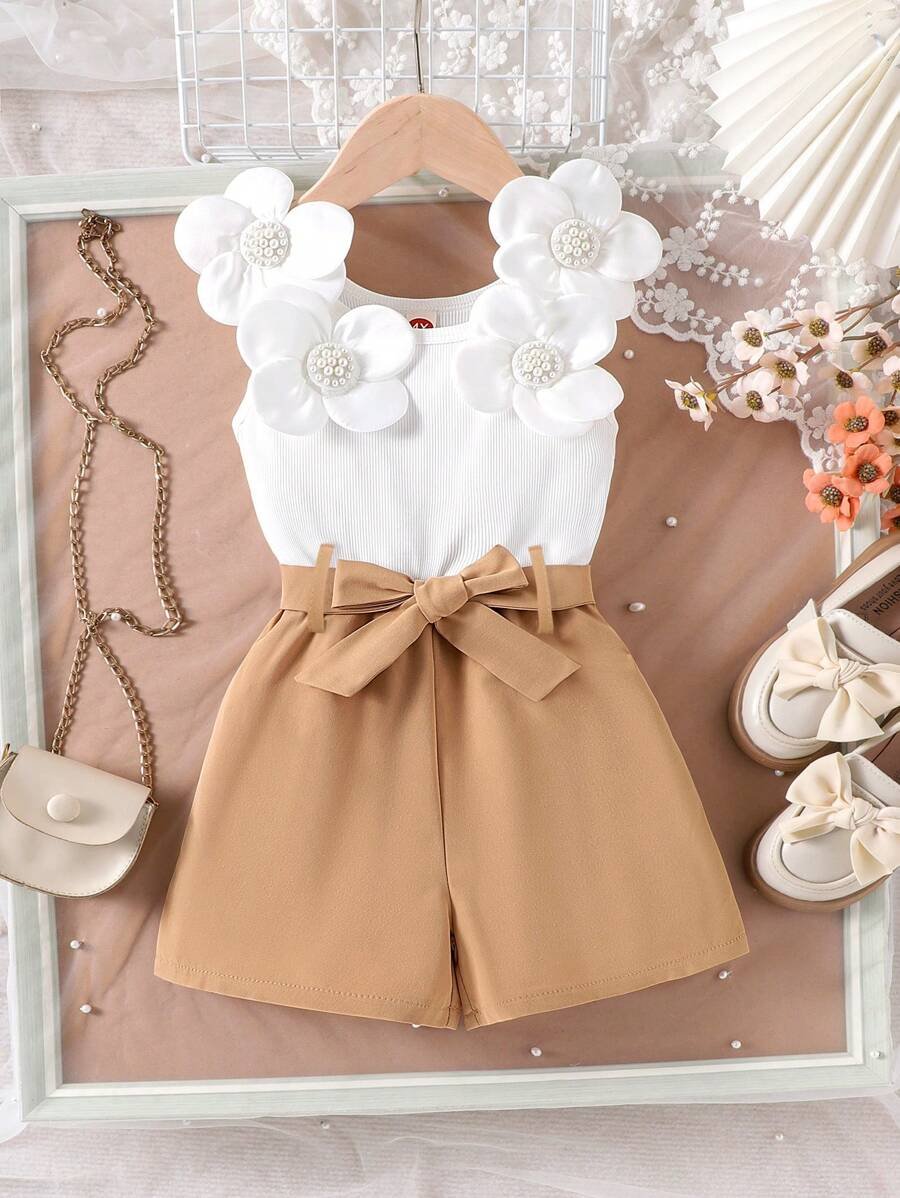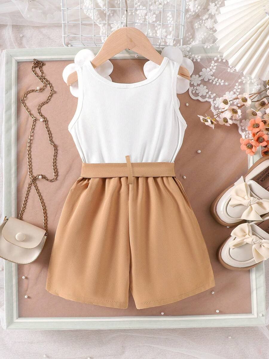 Niñas Shorts en mezclilla con estampado de pañuelo con paisley de color combinado bajo crudo