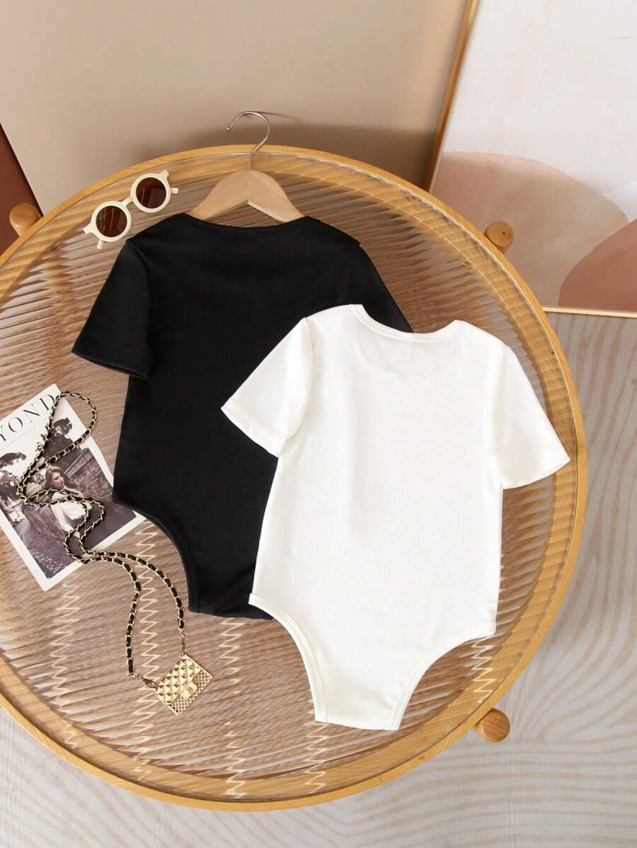 Mono de manga corta y cuello redondo de unicolor para niña