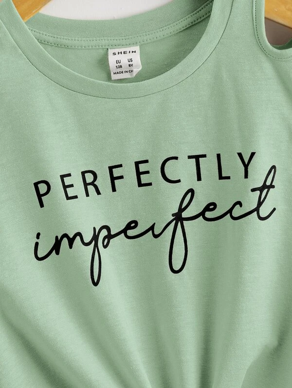 Niñas Camiseta con estampado de letra con abertura