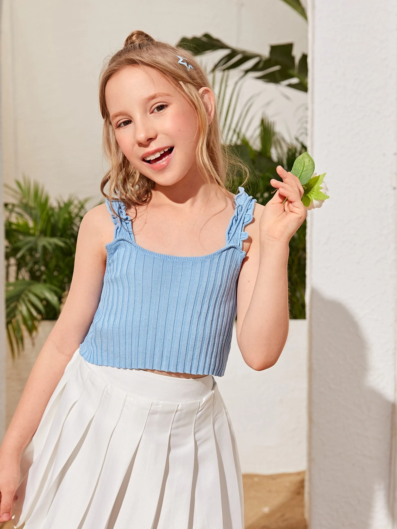 Niñas Top ribete en forma de lechuga tejido de canalé