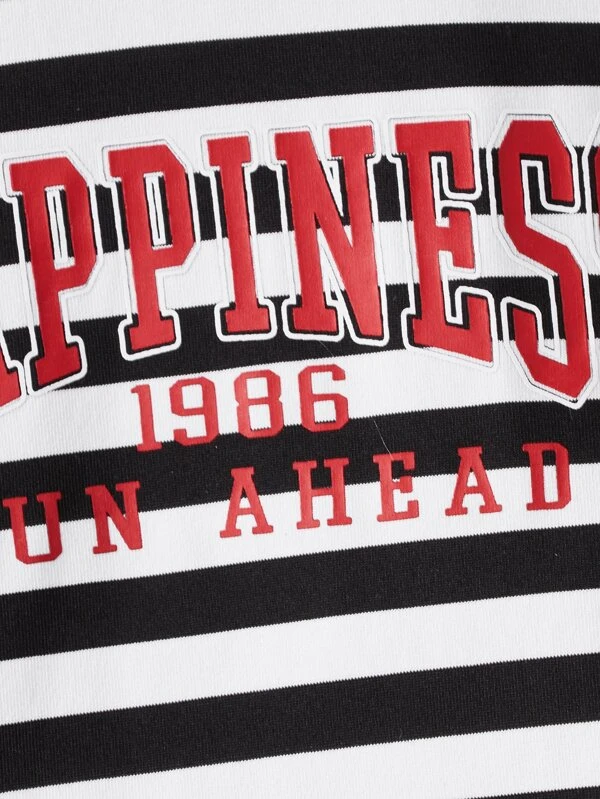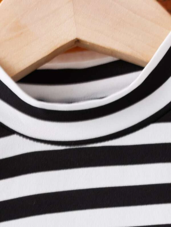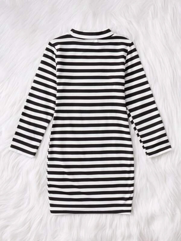 Niñas Vestido con estampado de rayas y letra de cuello alto