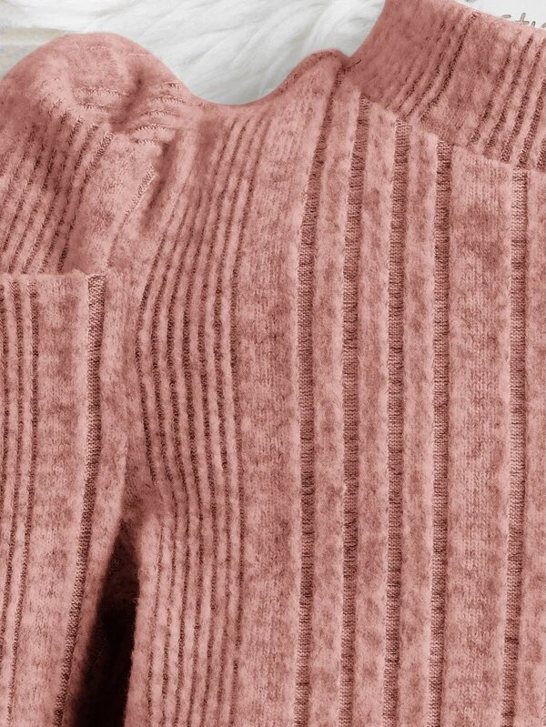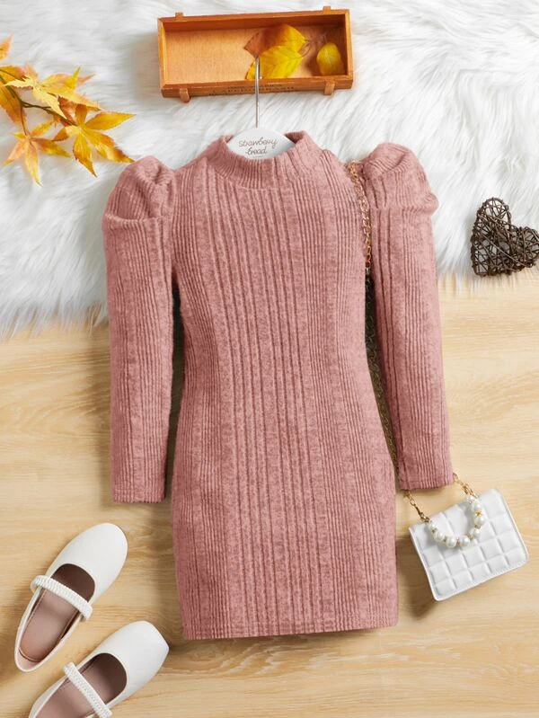 Niñitas Vestido de cuello alto de manga farol sin cinturón