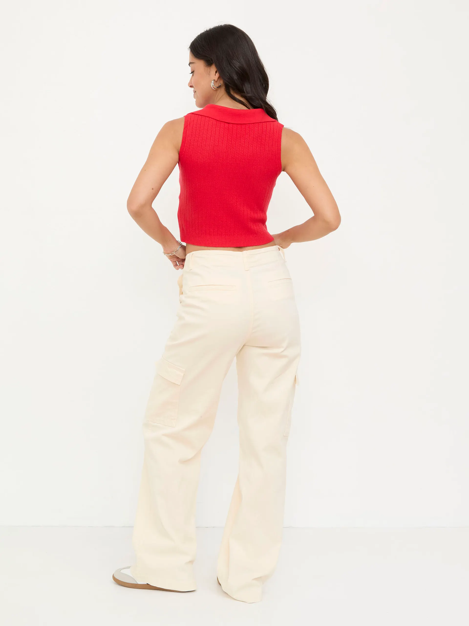 Pantalón de gabardina beige para mujer con bolsillos cargo, cierre cremallera y botón. Pantalones versátiles con los mejores fit que se adaptan a cualquier ocasión y estilo.