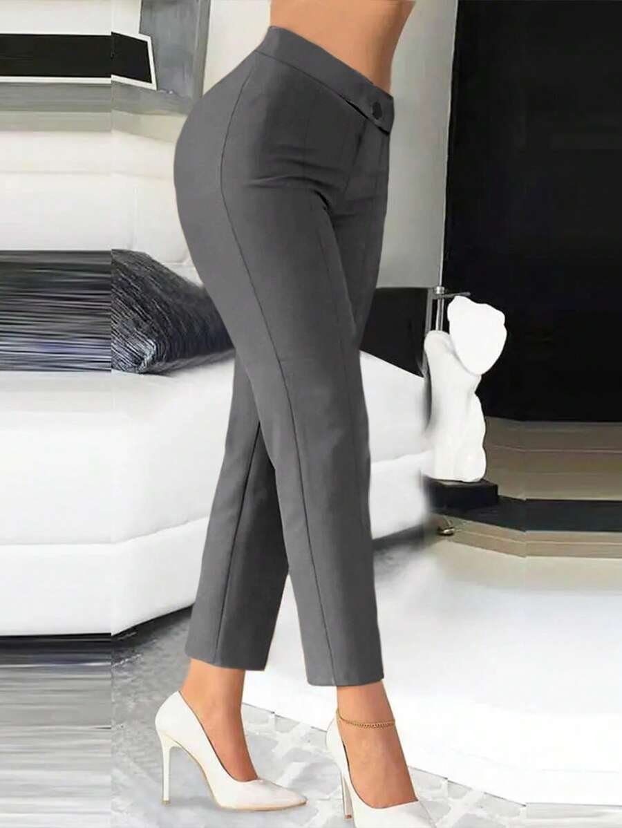Pantalones casuales de mujer con cierre de cremallera y botones