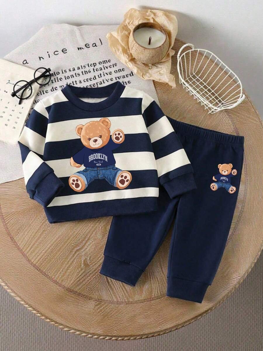 Conjunto De Sudadera Y Pantalón Con Estampado De Letras Y Corazones Para Bebé Niño