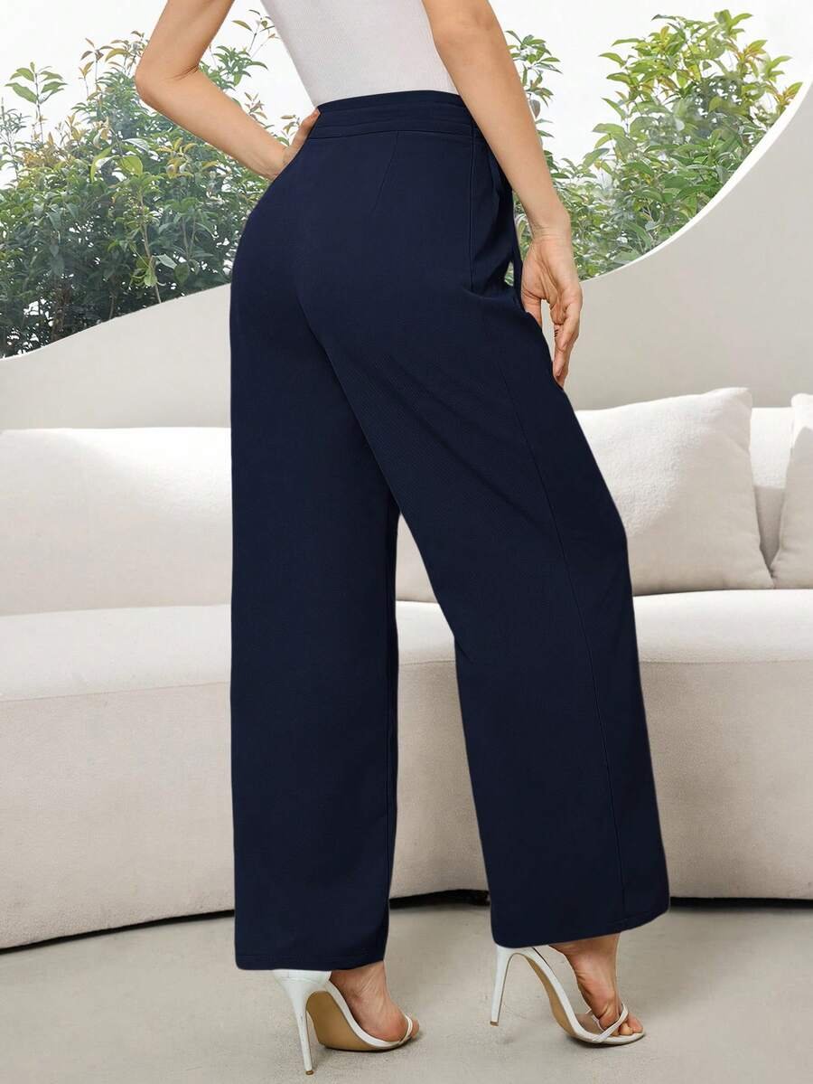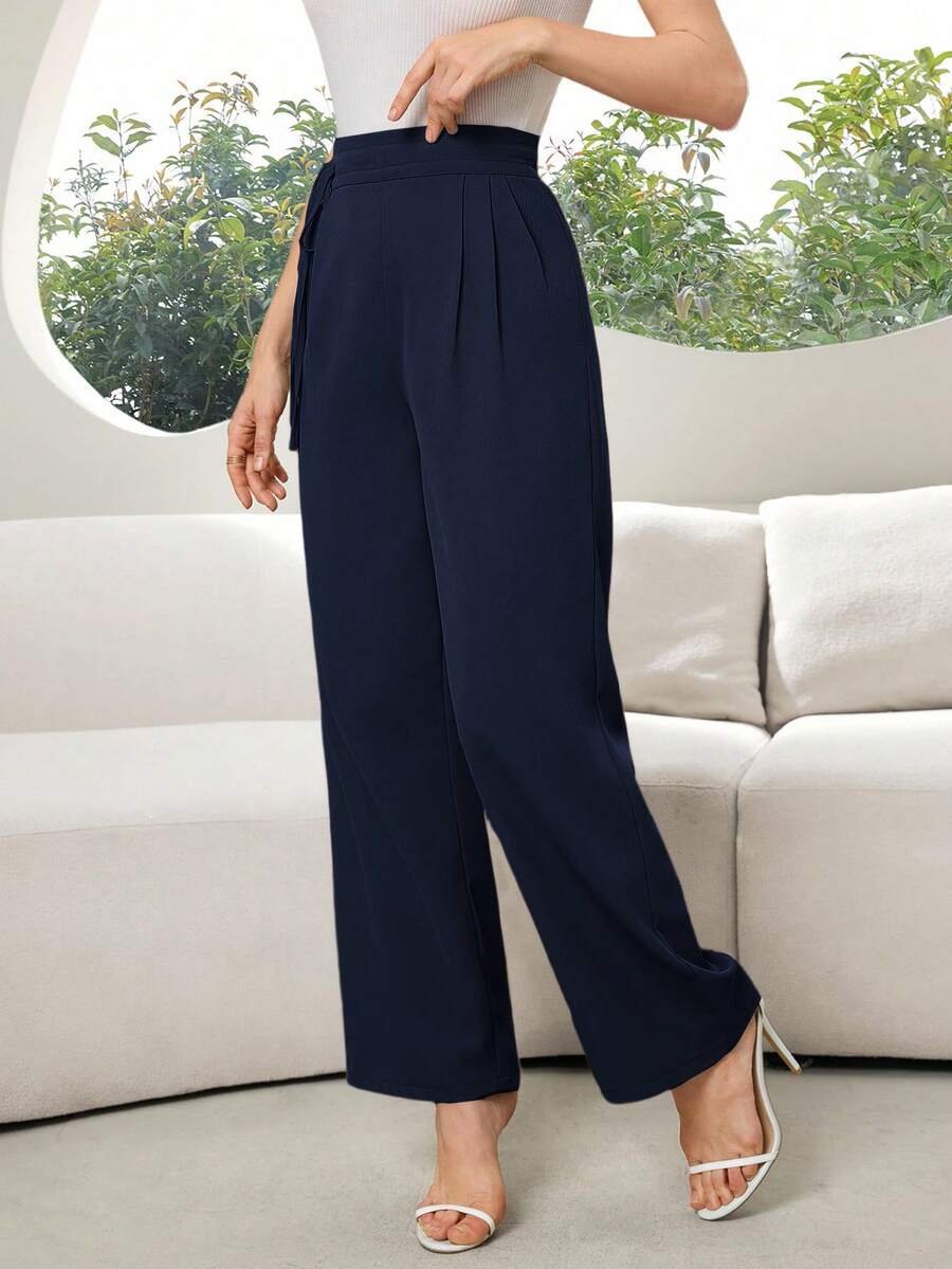 Pantalones casuales sueltos de unicolor con cordón en la cintura