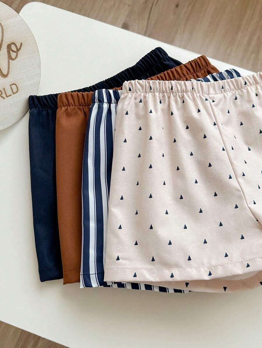 Pantalones cortos casuales elásticos de cintura unicolor de patrón