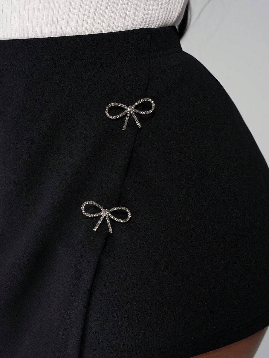 Pantalones cortos con lazo asimétrico y adornos de strass