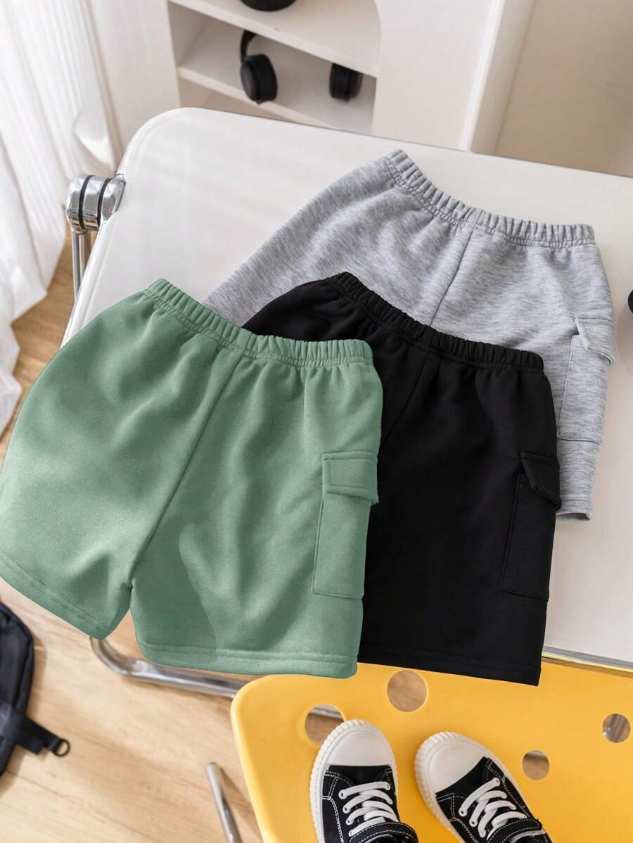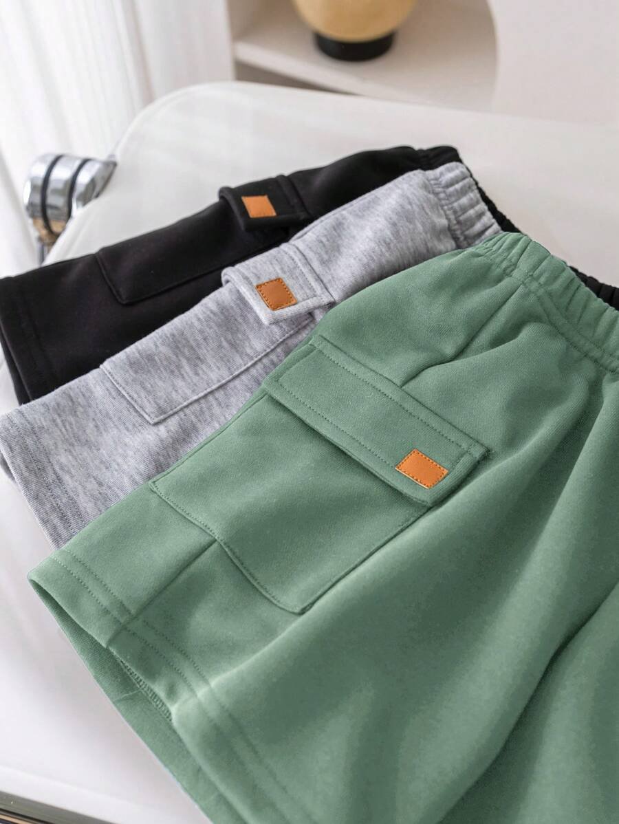 Pantalones cortos de punto con decoración de parche de bolsillo