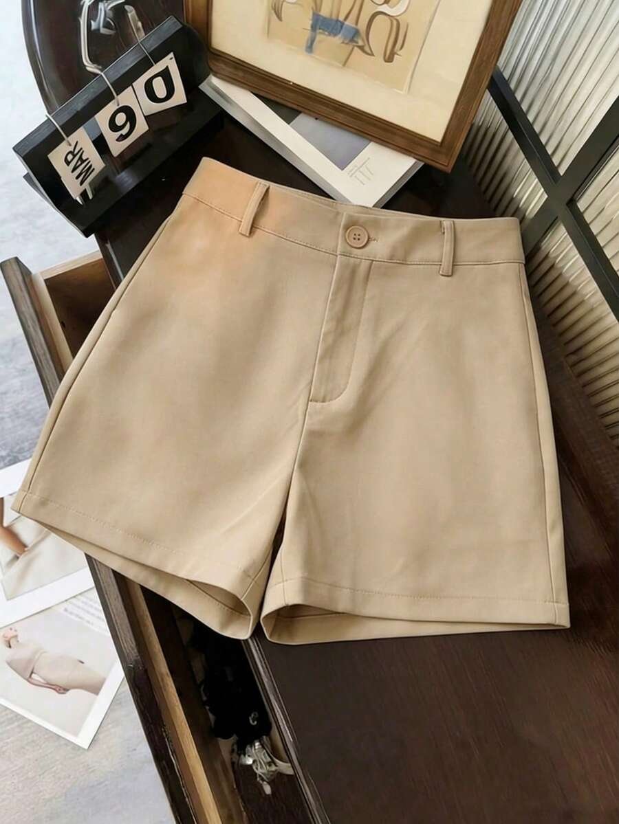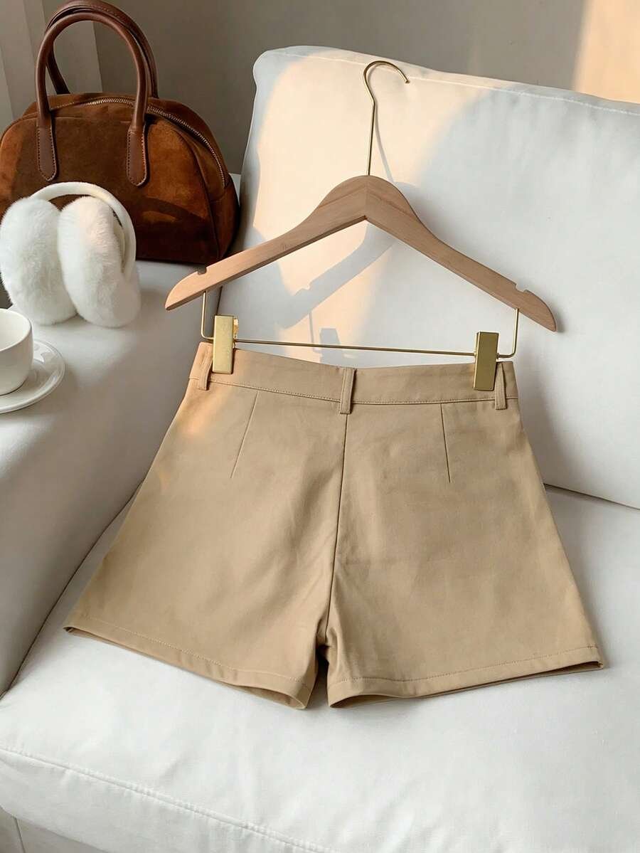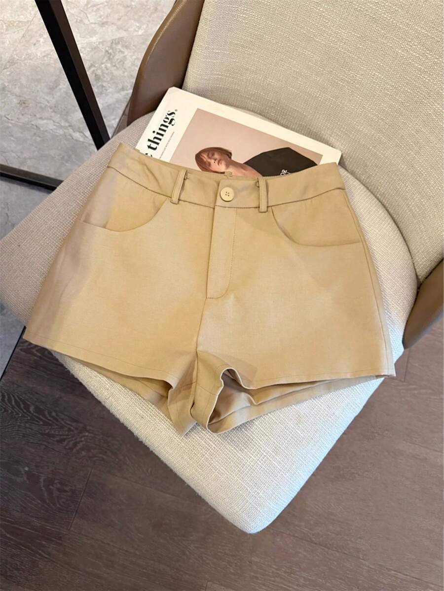 Pantalones cortos de verano de color caqui con cintura de bolsa de papel