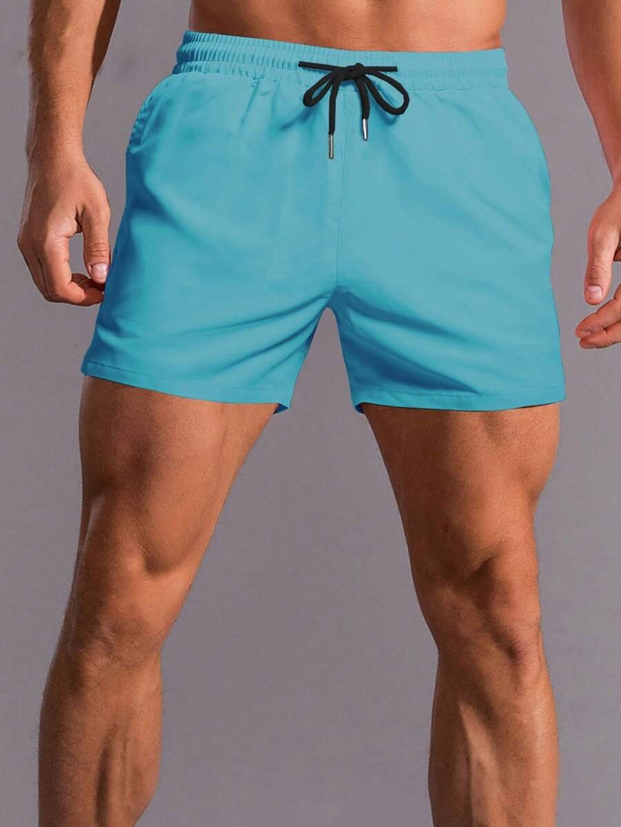 Pantalones Cortos Holgados De Color Sólido Para Hombres Con Cintura Ajustable Y Cordón