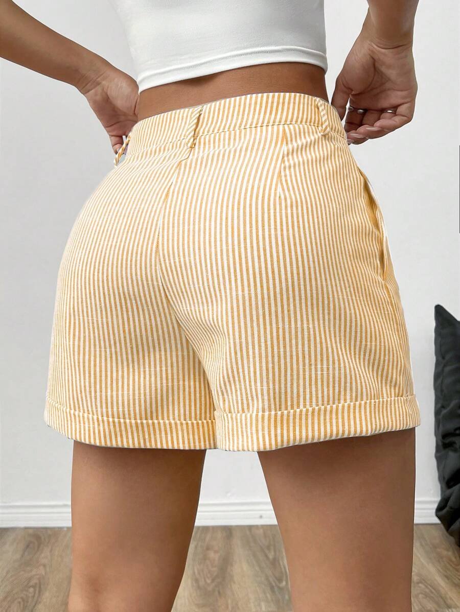 Pantalones cortos informales de mujer con rayas y bajo enrollado