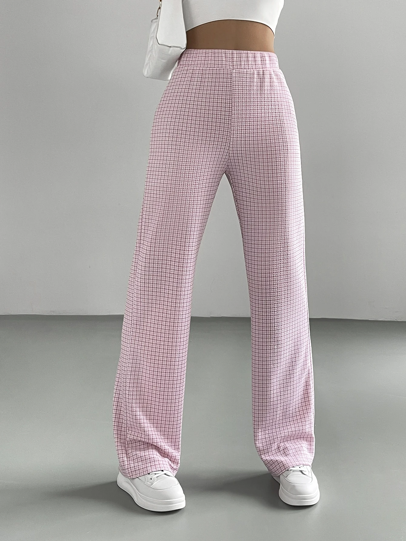 Pantalones De Cintura Alta De Cuadros Rosados