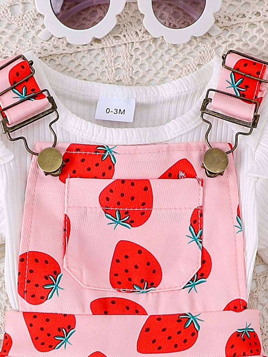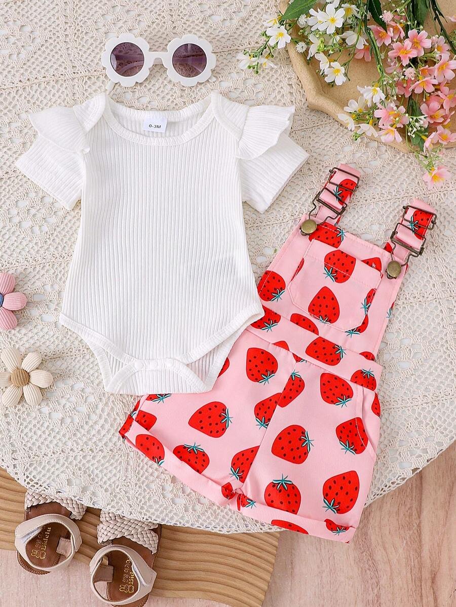 Peto y pantalón de babero de manga corta, look adorable para bebé niña