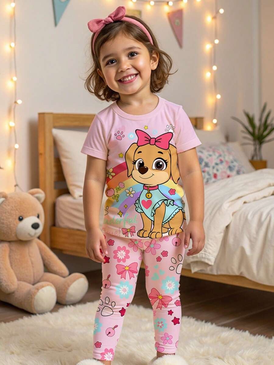 Pijama de niña joven con patrón lindo de cachorro