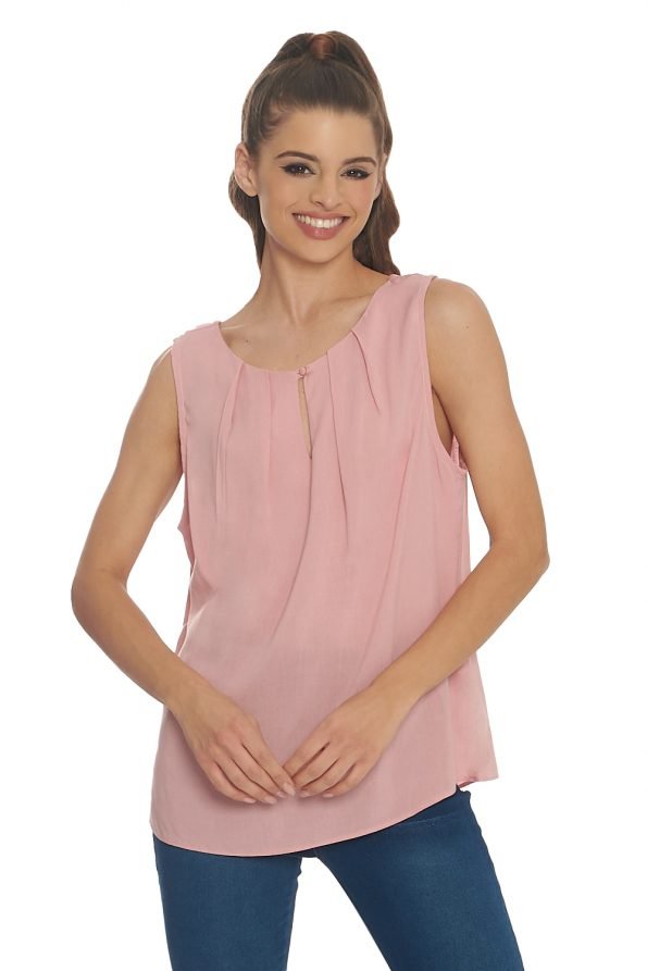 Playera cuello camisero de popelina con listón tipo moño y abertura de gota posterior con botón y manga corta