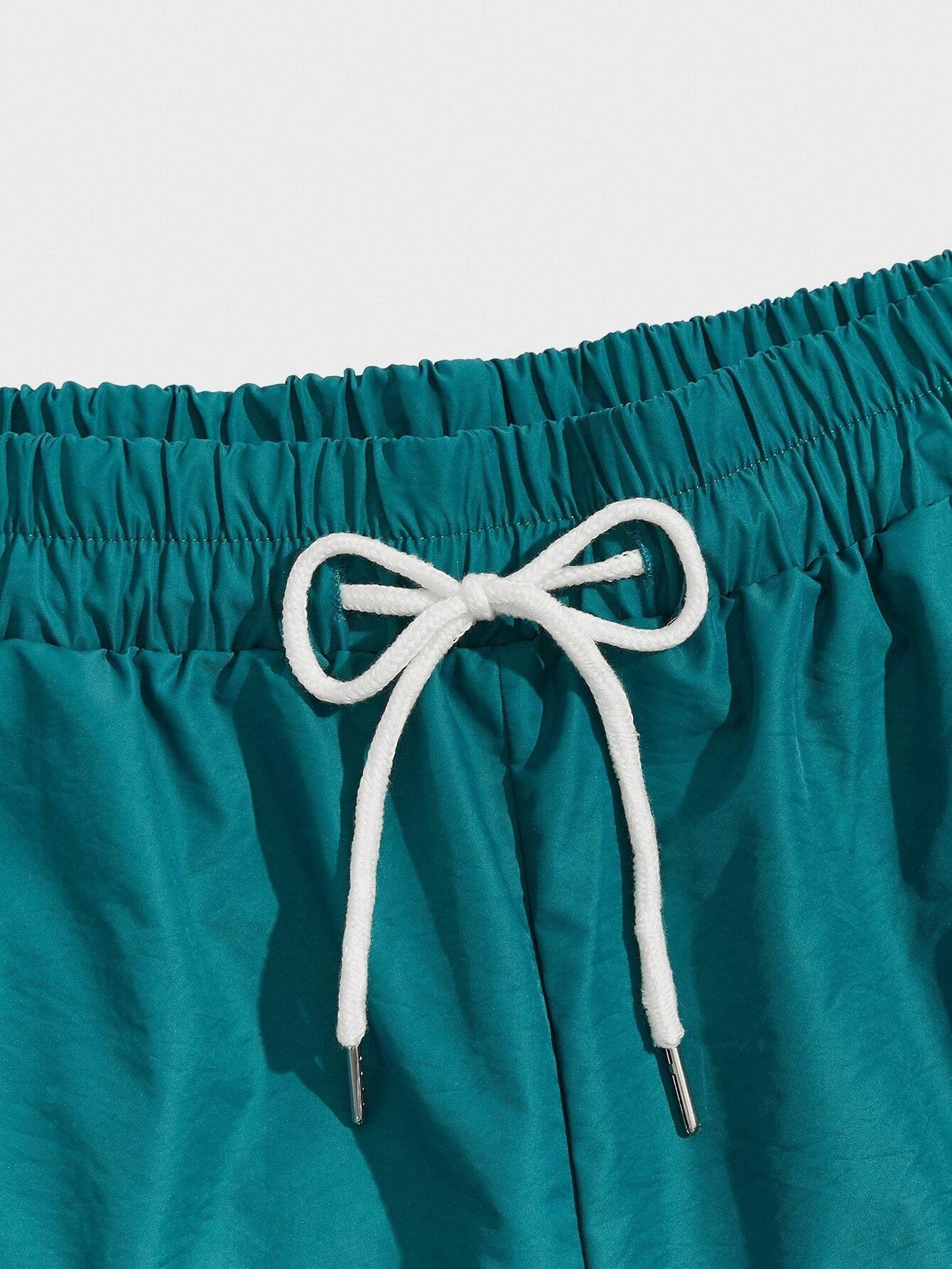 Shorts Con Cordón Y Diseño Gráfico De Huella Digital Para Hombres