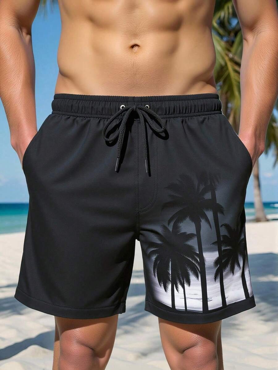 Shorts de playa casuales con estampado tropical