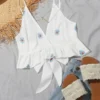 Top bajo fruncido con cordón delantero floral de margarita
