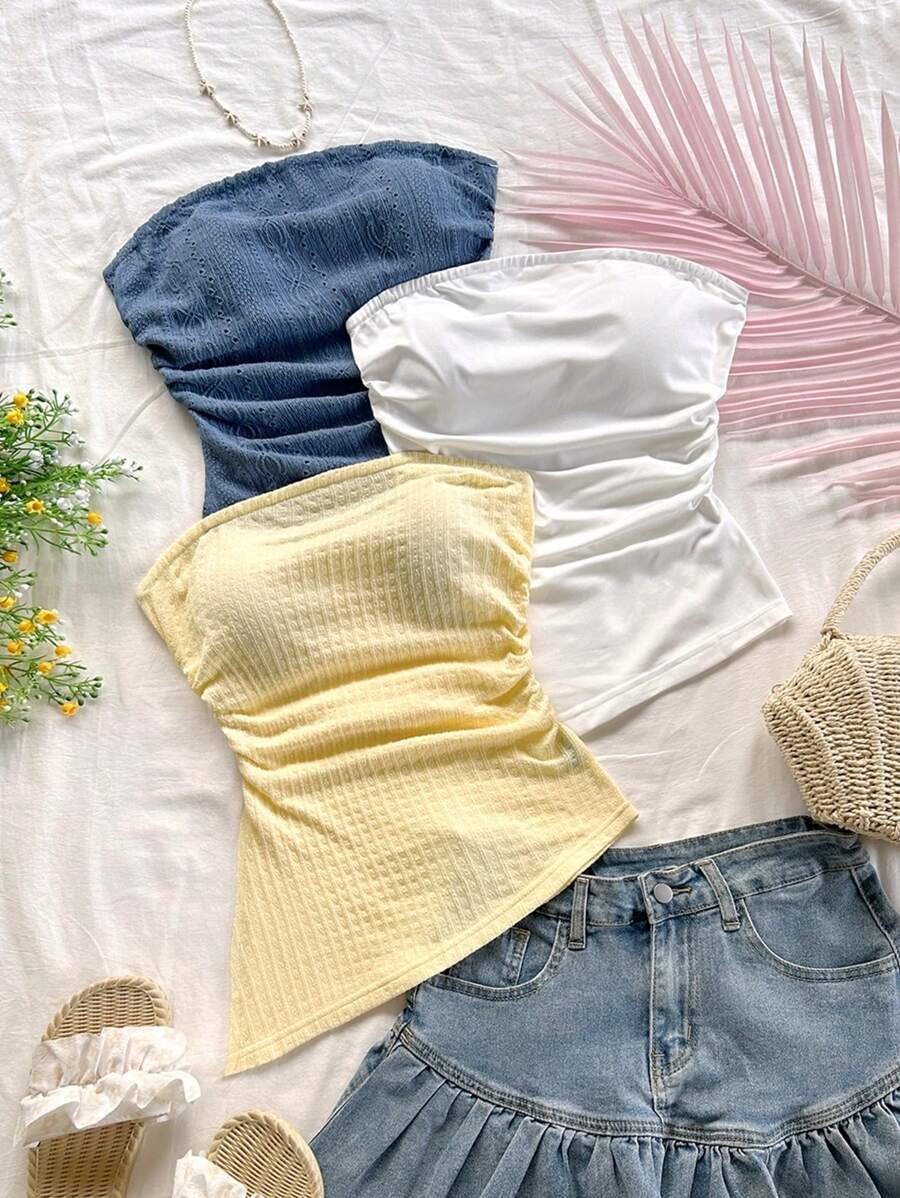 Top bandeau asimétrico plisado