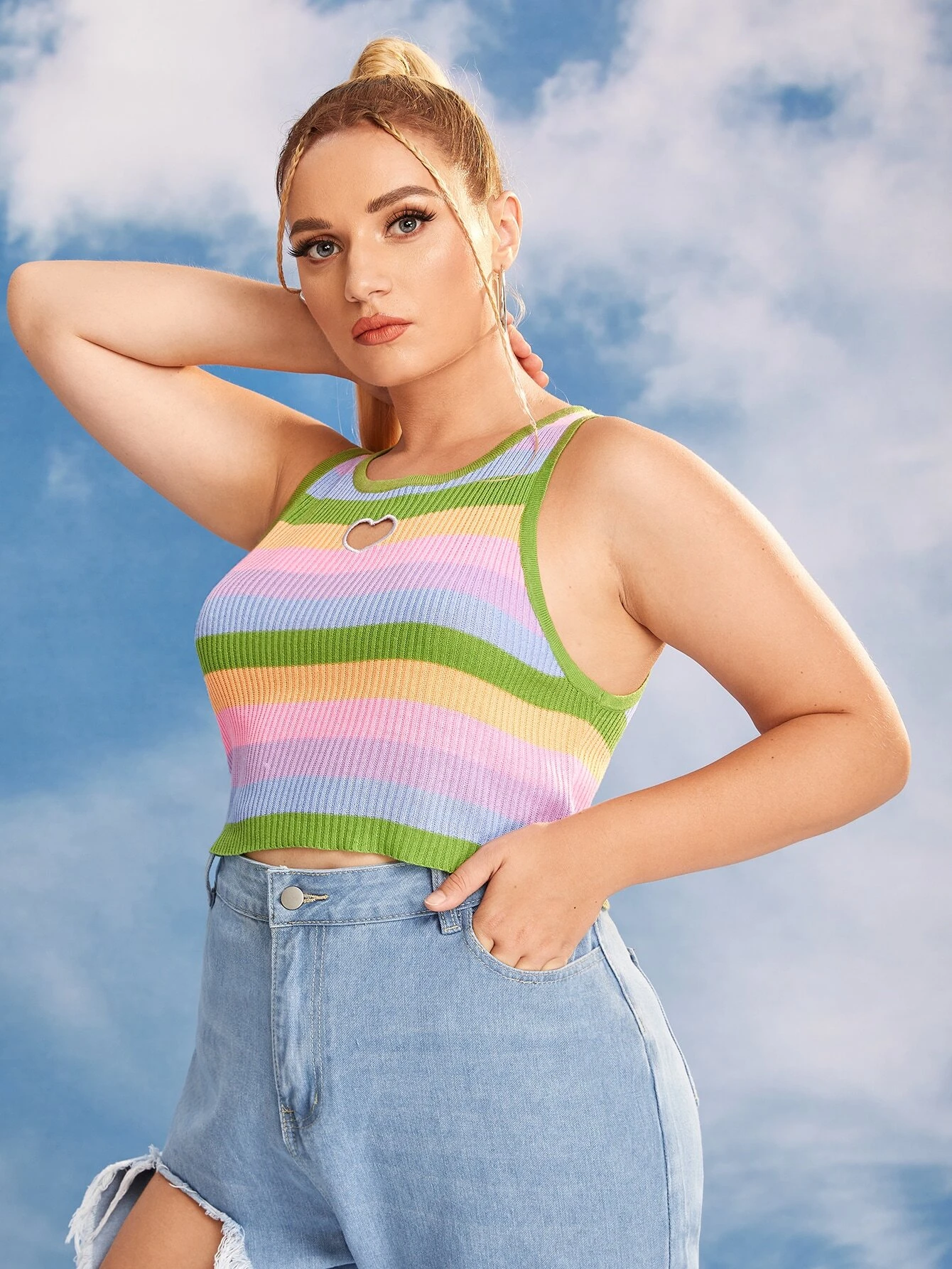 Top bandeau girante delantero fruncido trasero de rayas
