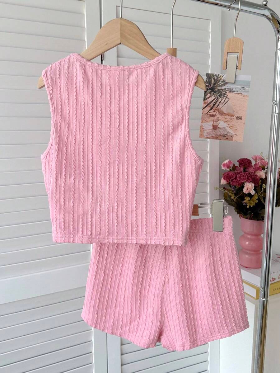 Top corto sin mangas de cuello redondo cómodo y pantalones cortos
