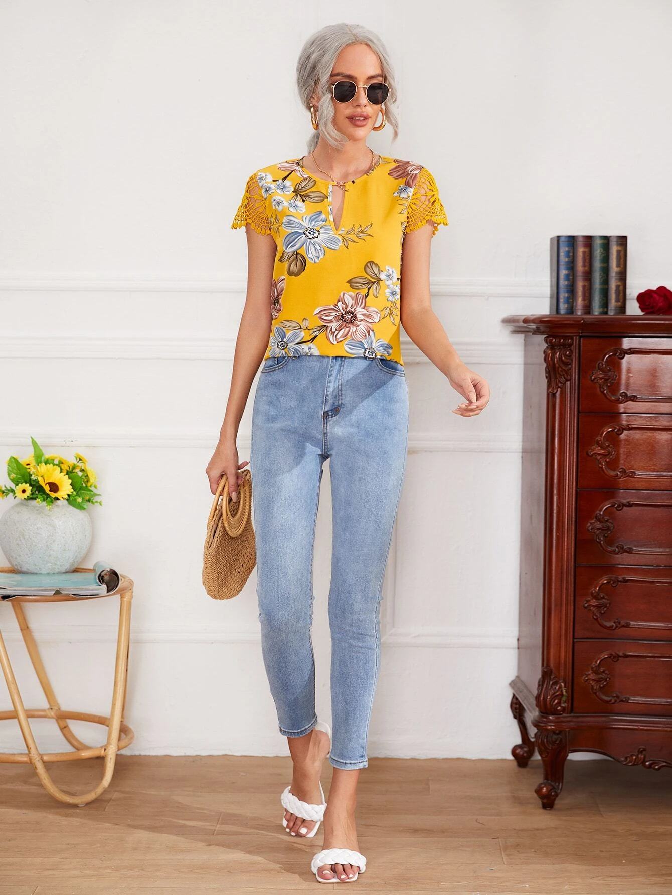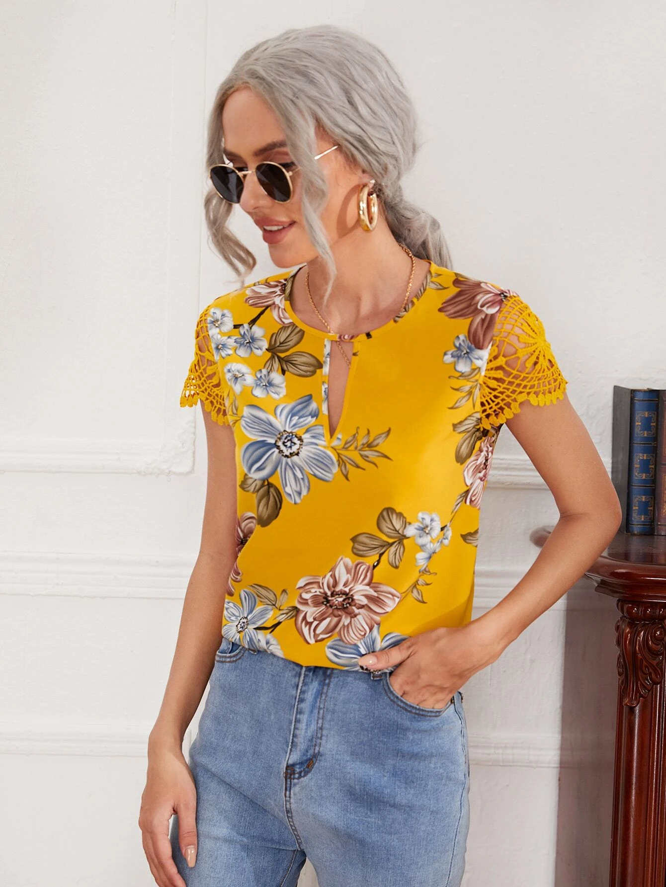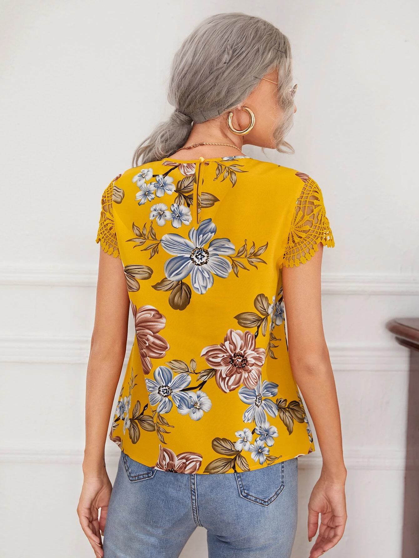 Top de cuello con abertura de ojo floral