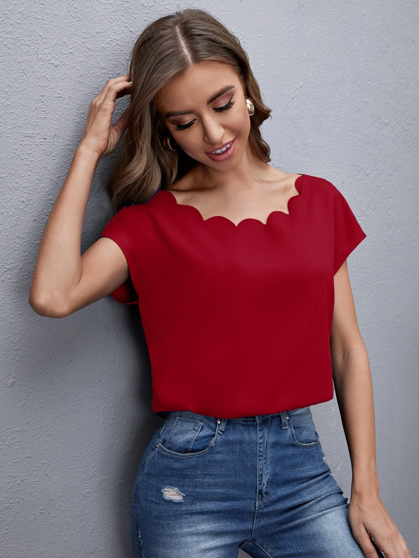 Top de manga murciélago ribete en abanico