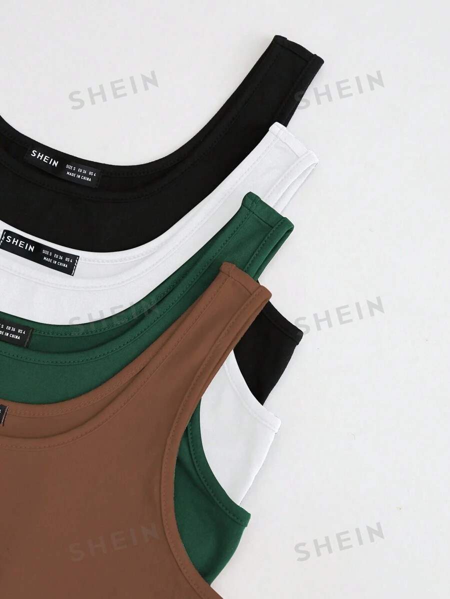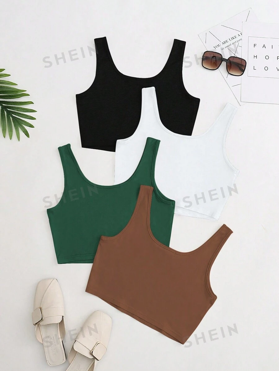 Top De Tanque Recortado De Color Sólido Para Mujer