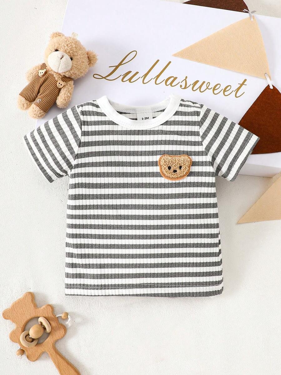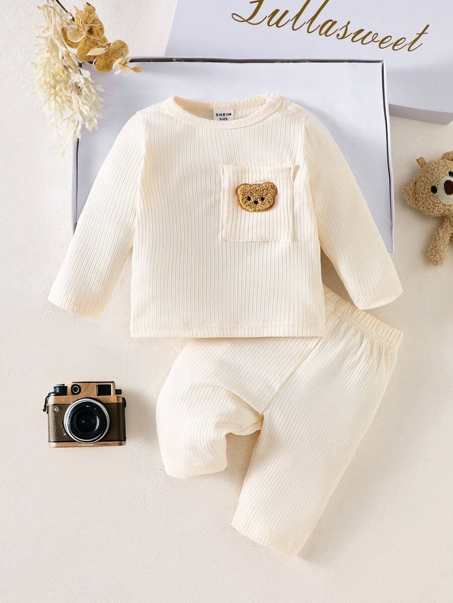 Top de tela texturizada con diseño de bolsillo y estampado de oso