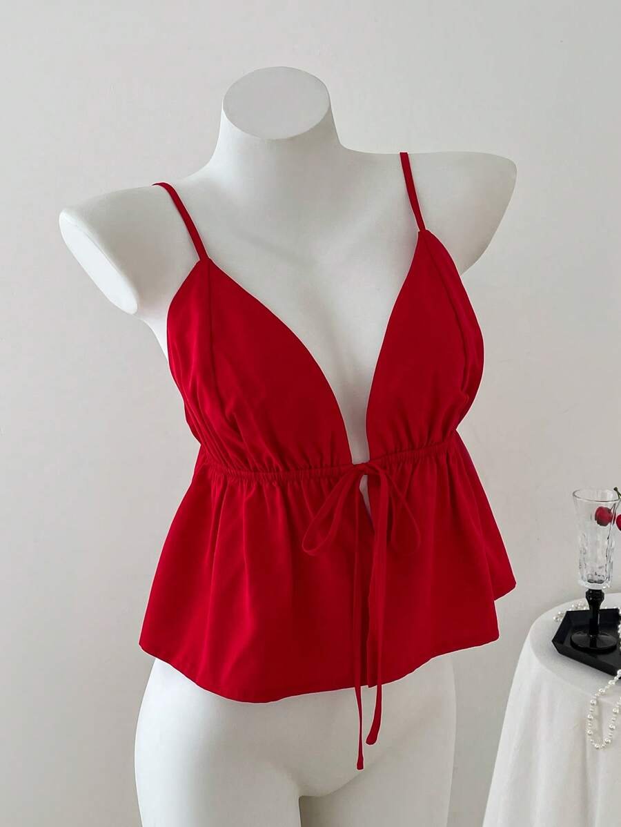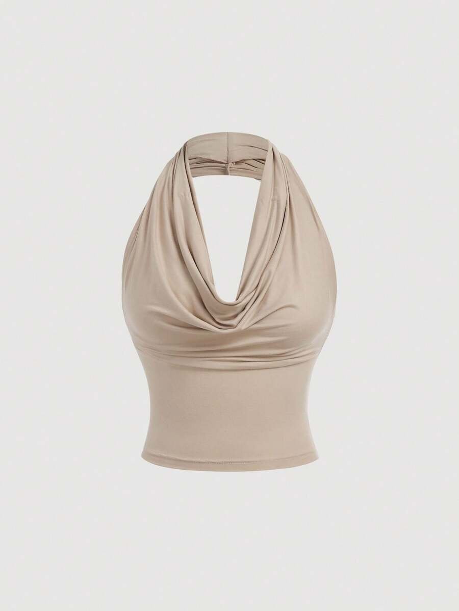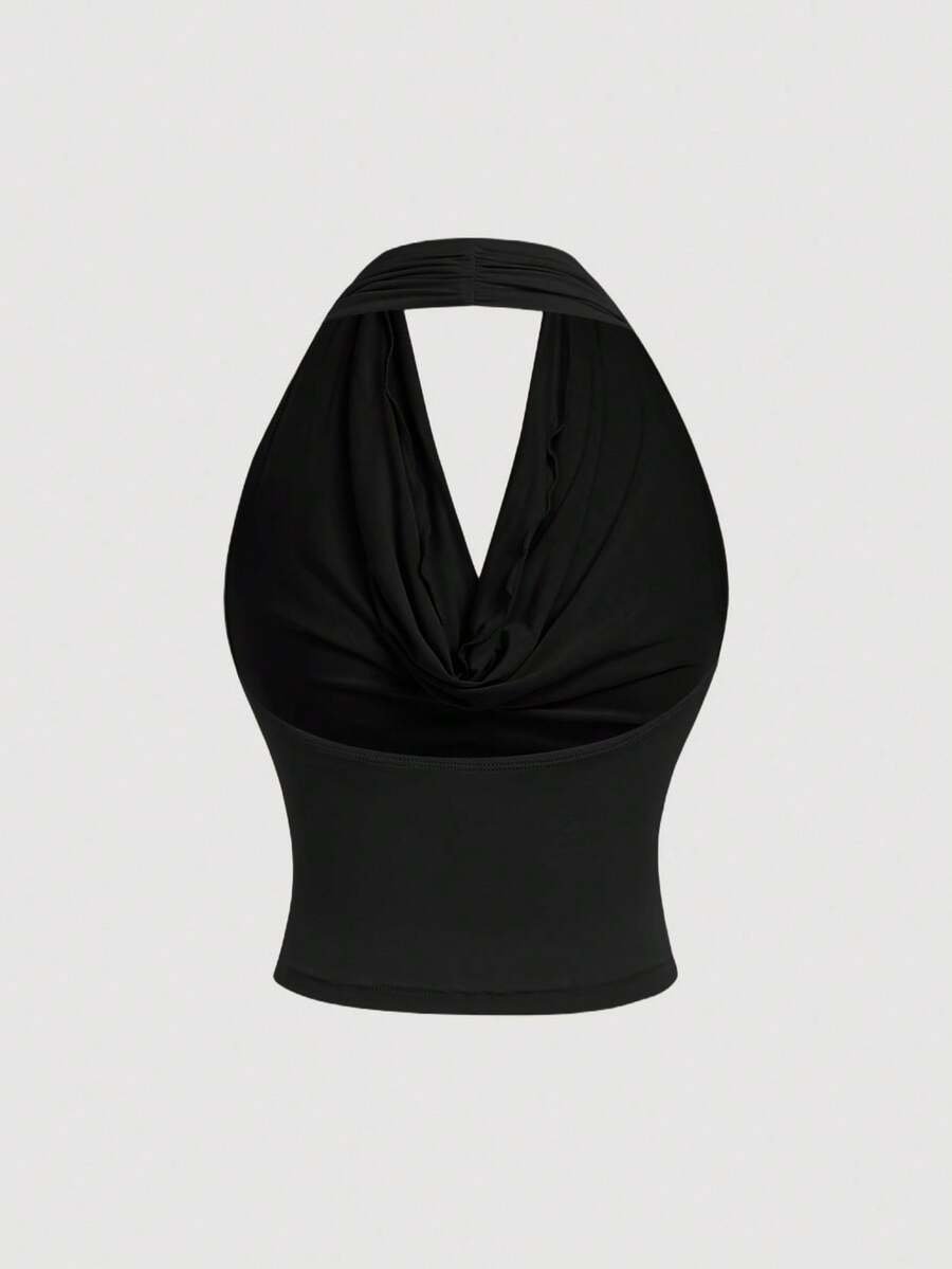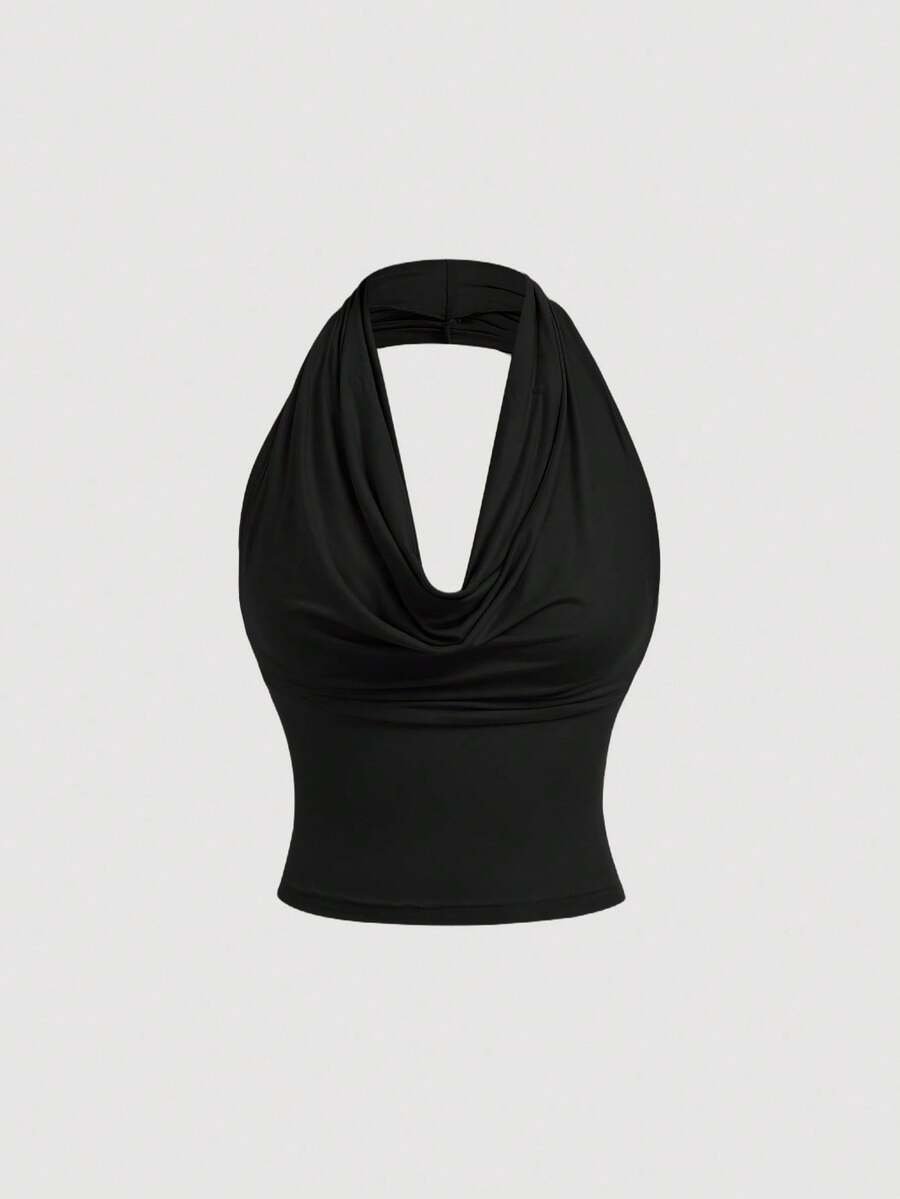 Top de tirantes de moda versátil con cuello drapeado de unicolor