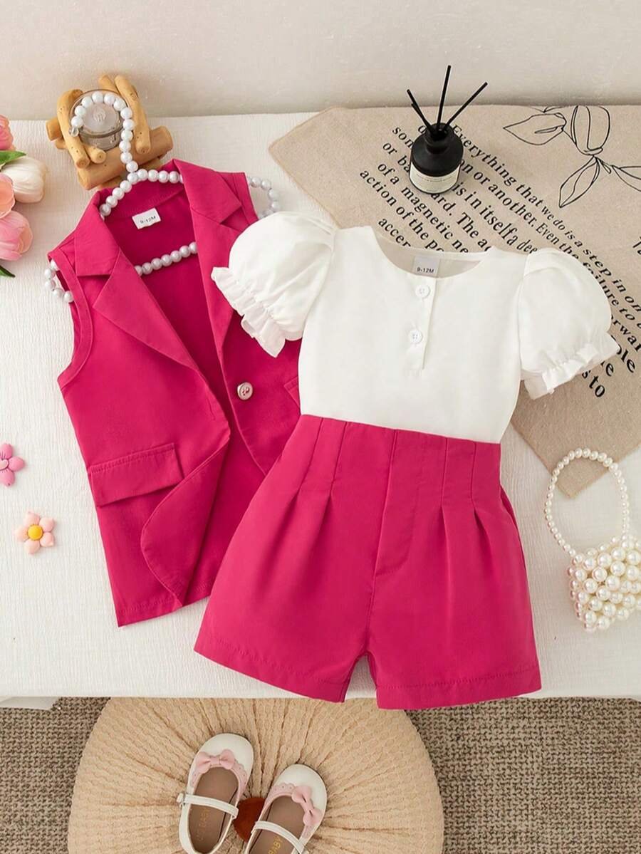 Top sin mangas con diseño de corazón y falda plisada elegante con volantes