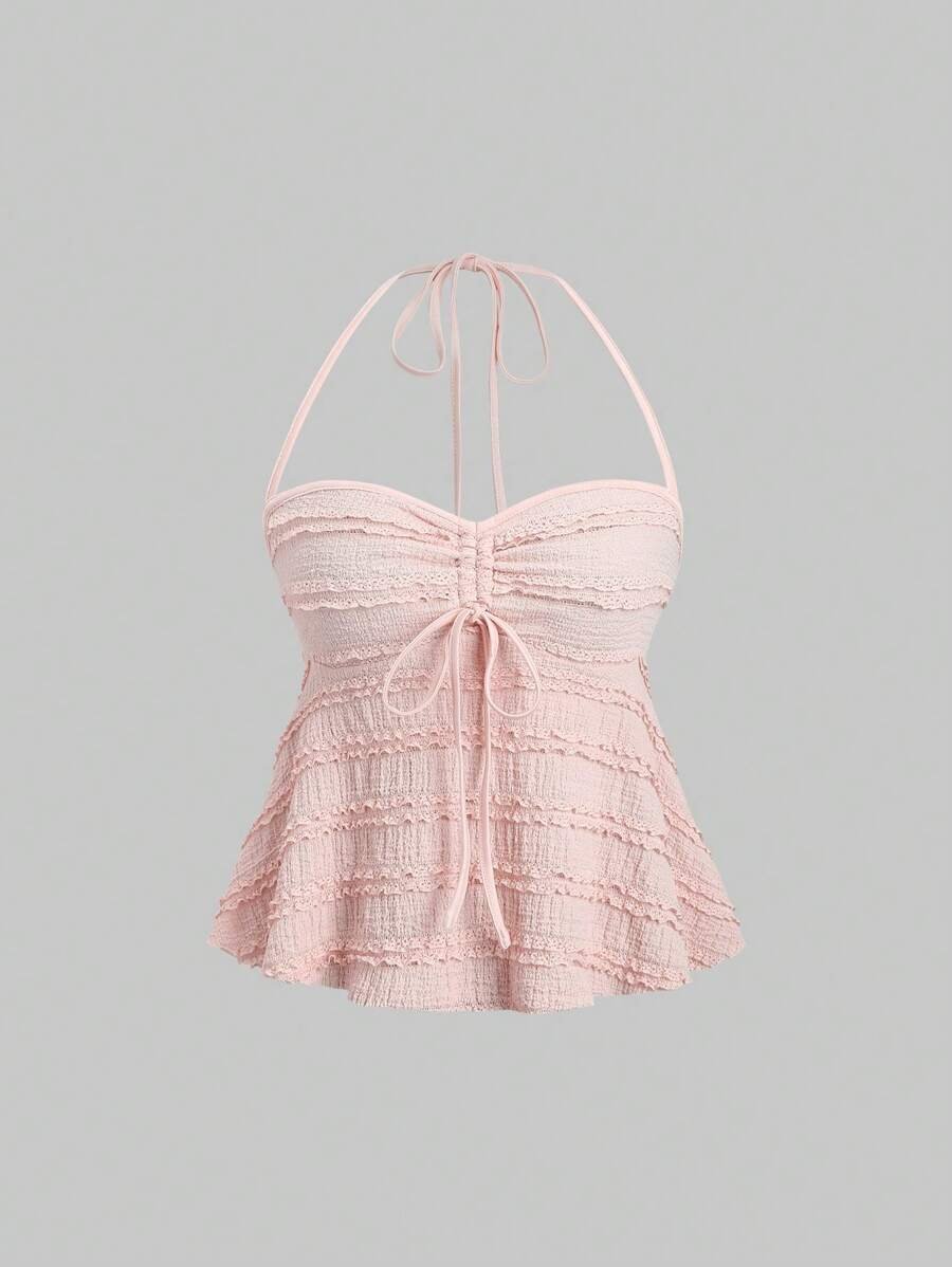 Top sin mangas de mujer elegante y romántico con cuello drapeado