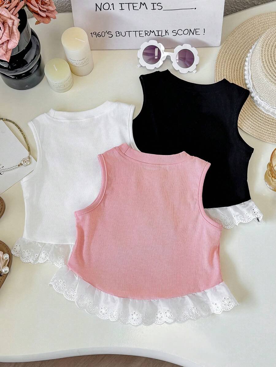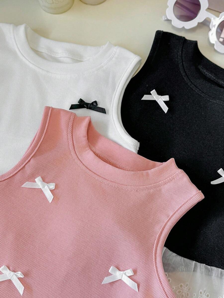 Top sin mangas informal con ribete de encaje y diseño versátil con lazo