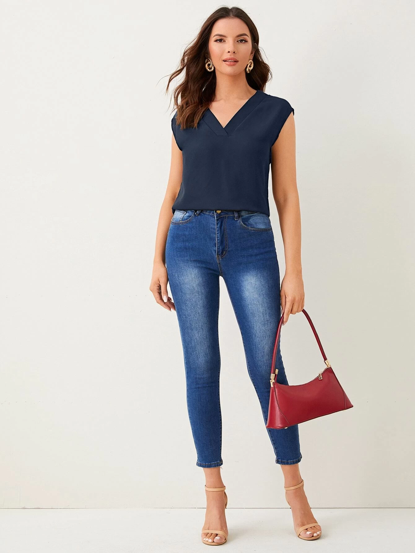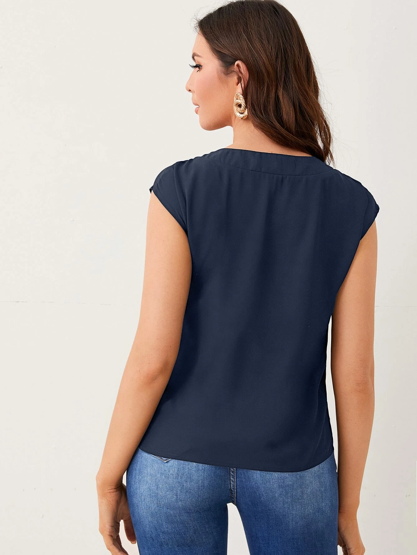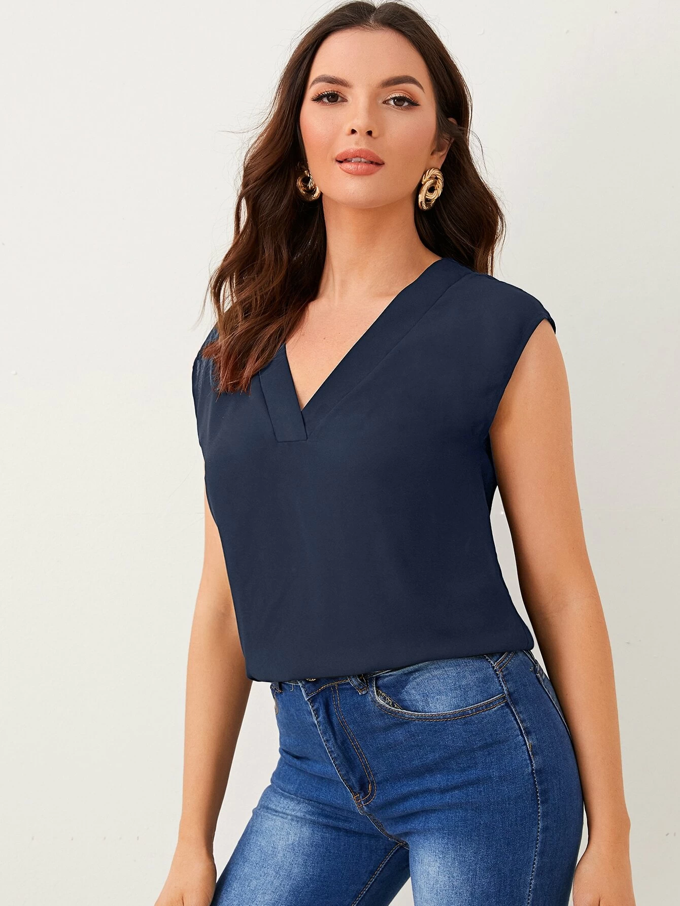 Top unicolor escote V