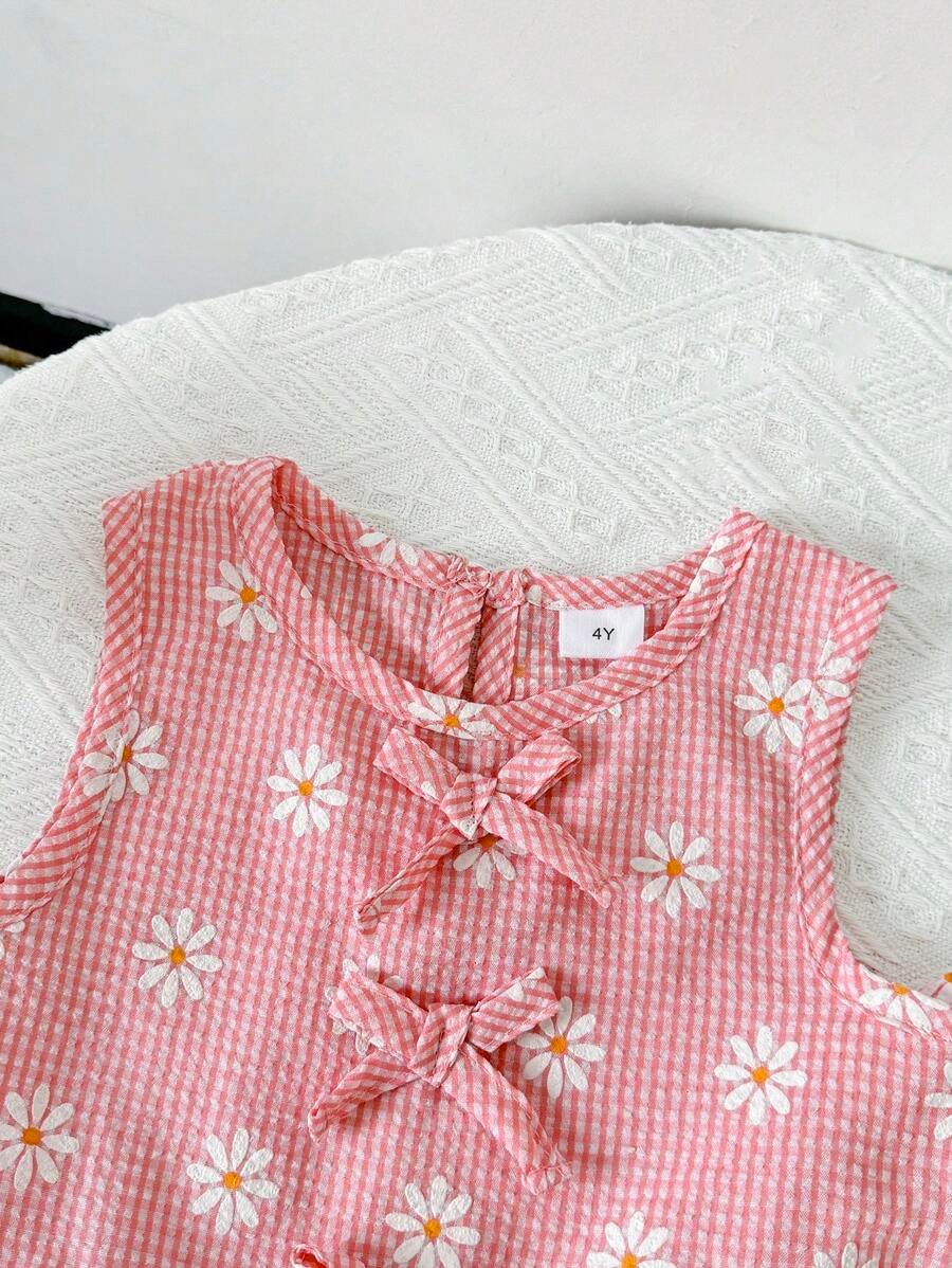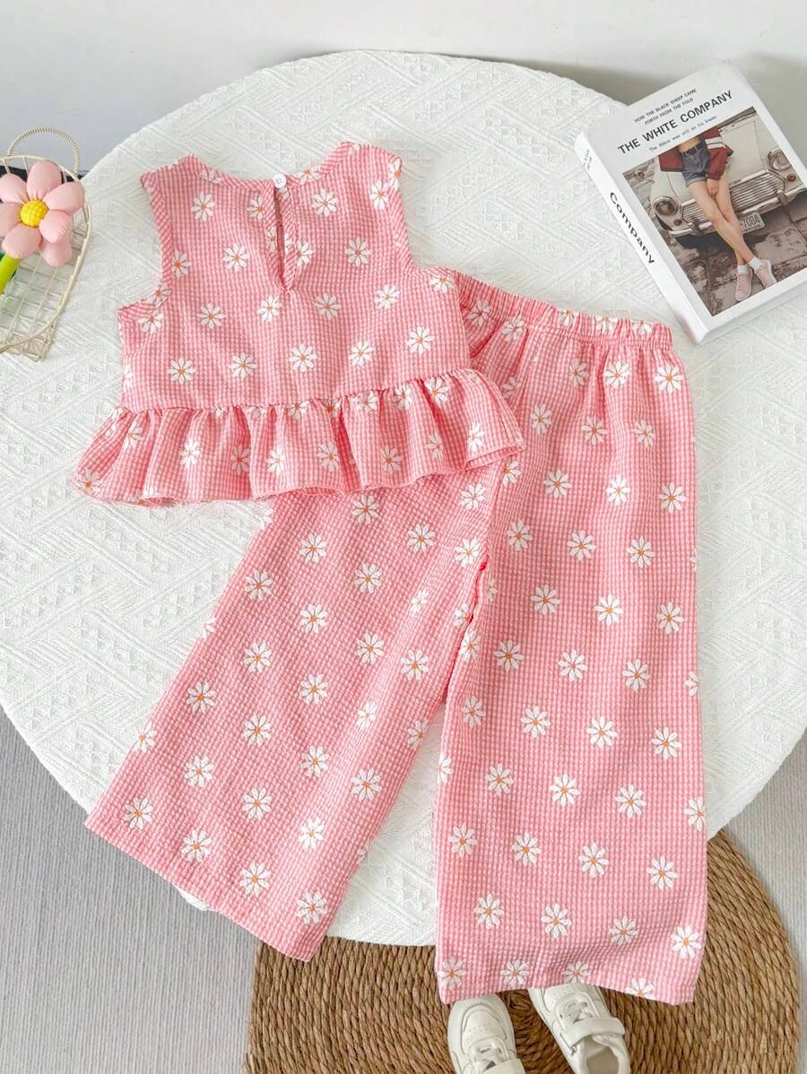 Top y pantalones de niña con estampado de cuadros y flores