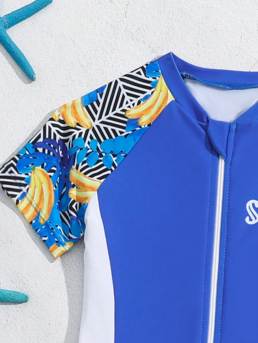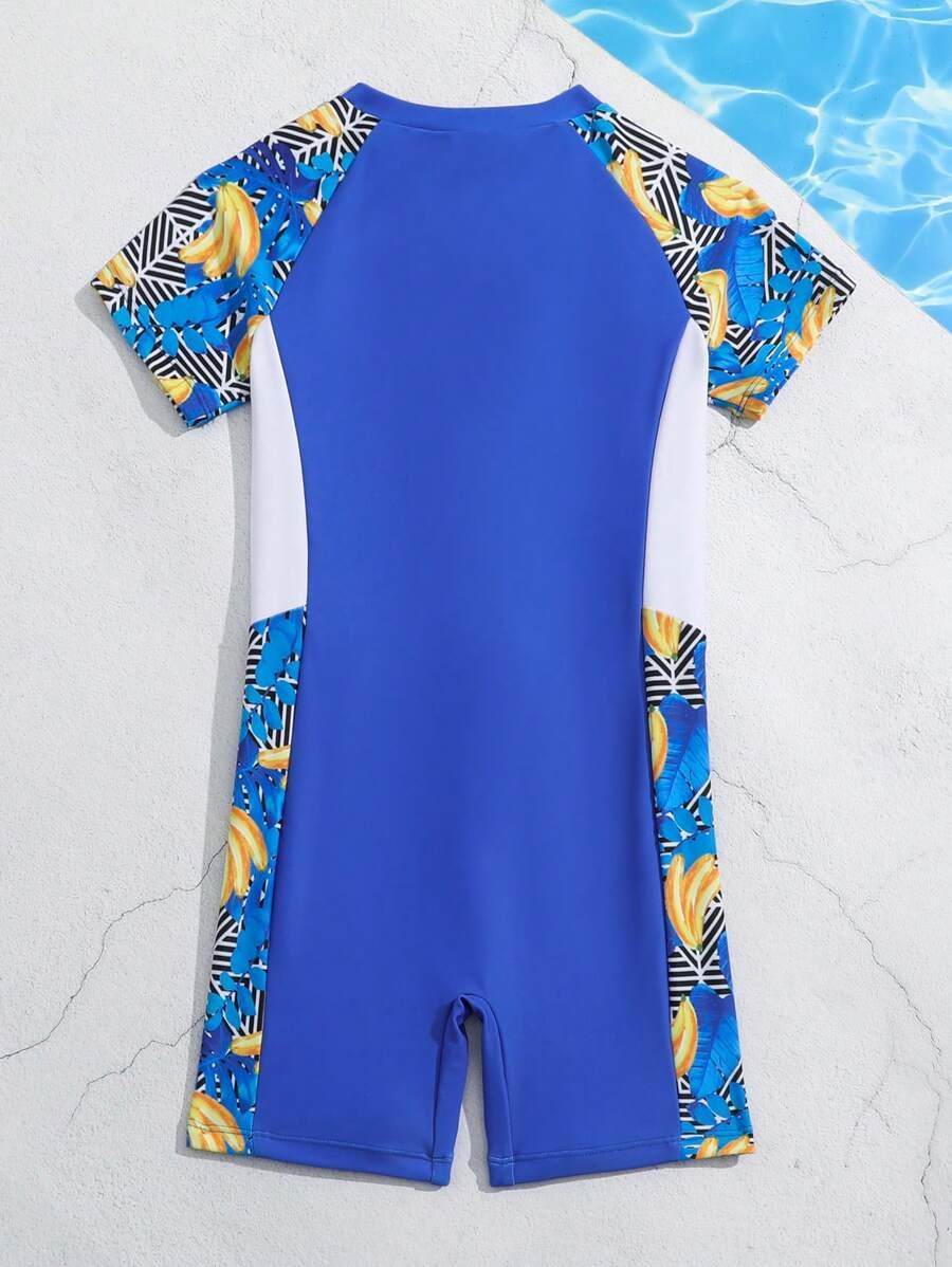 Traje De Baño De Una Sola Pieza Con Estampado Tropical Para Chico Joven