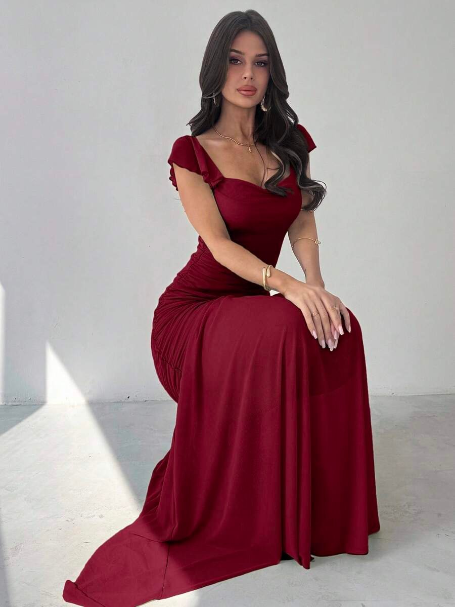 Vestido ajustado de malla con tira cruzada de cuello halter