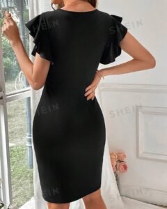 Vestido azul mini ajustado de mujer con volantes en el bajo