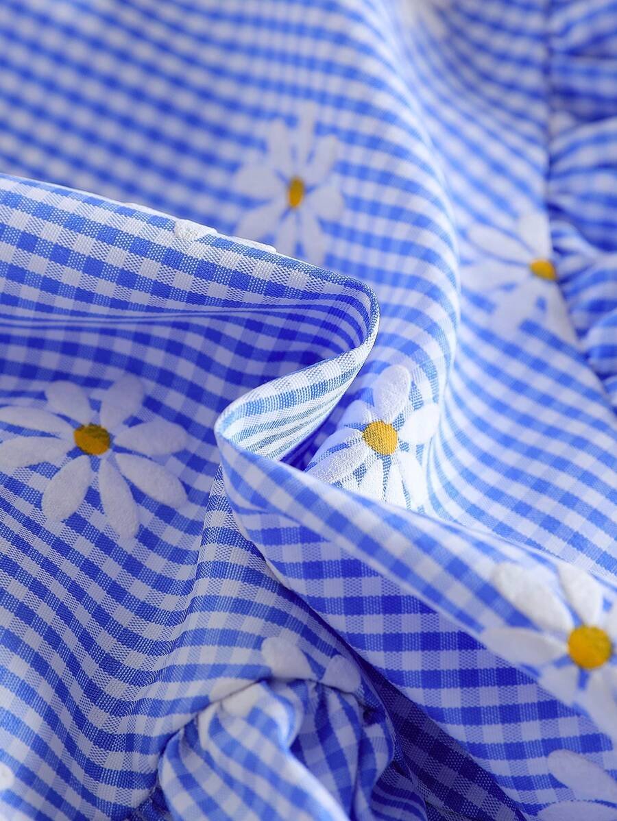 Vestido azul y boina a juego con estampado de cuadros escoceses