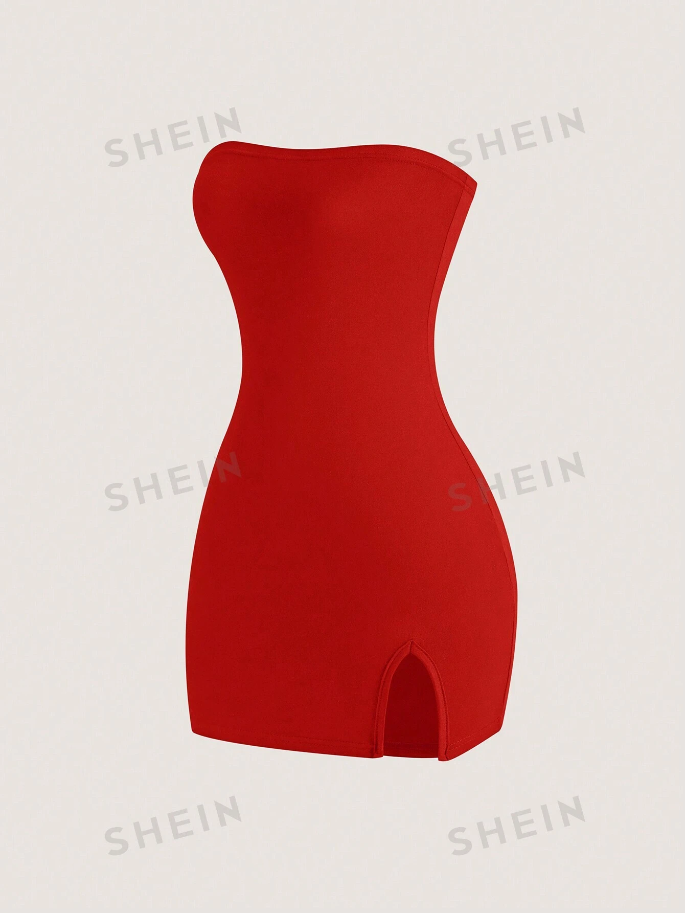 Vestido bandeau ajustado de unicolor para mujer con abertura alta