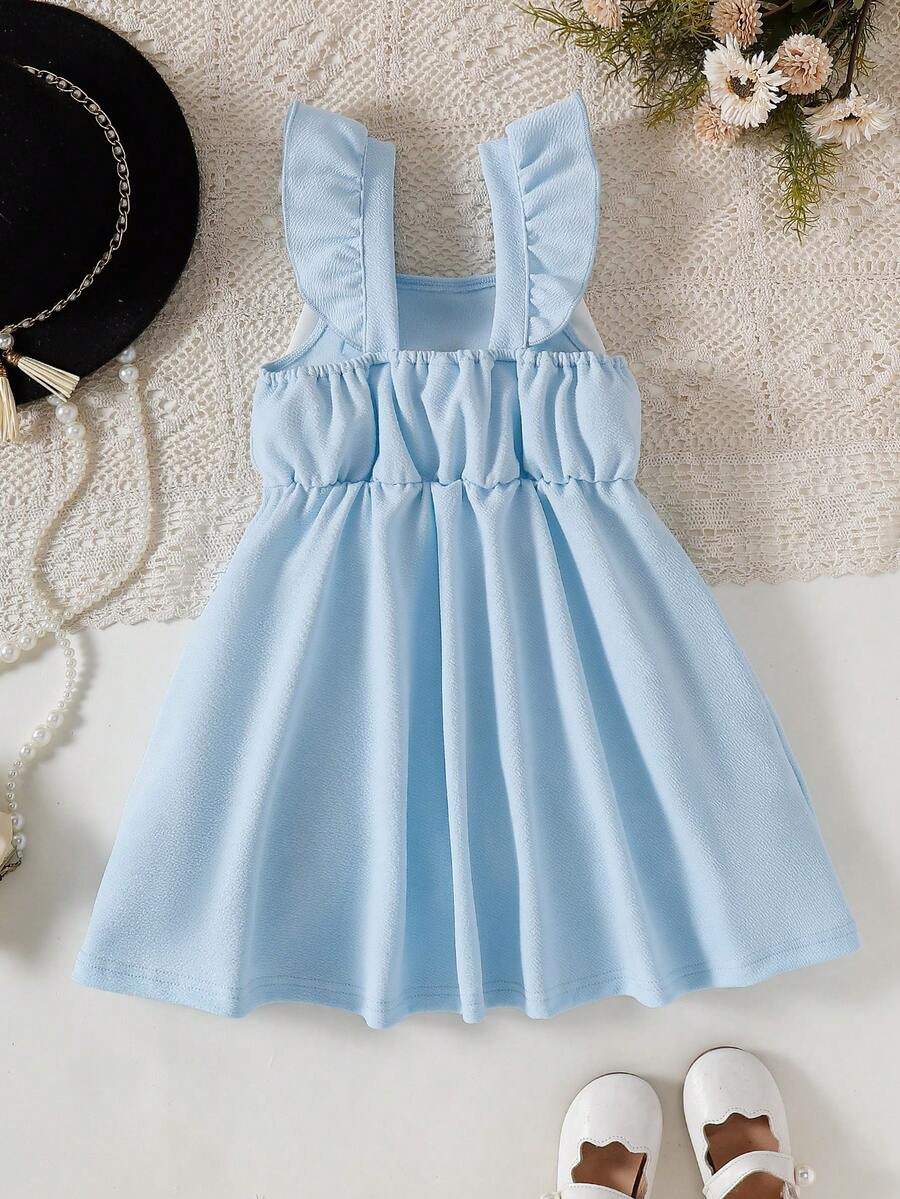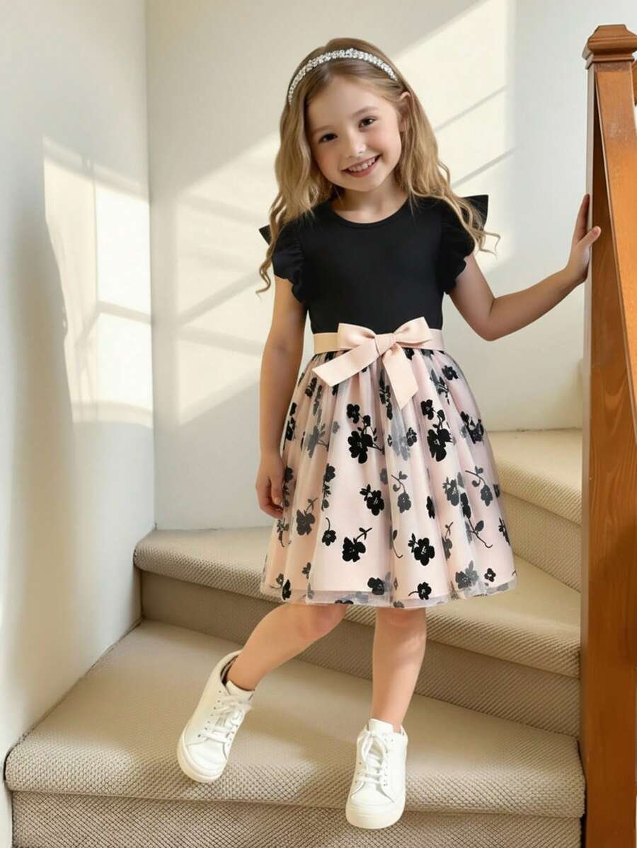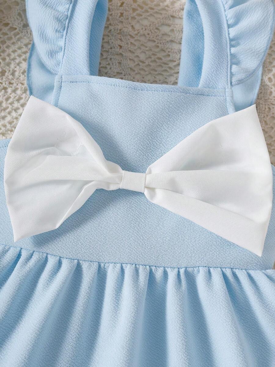 Vestido blanco elegante para niña con gran lazo y ribete de cinta ondulada