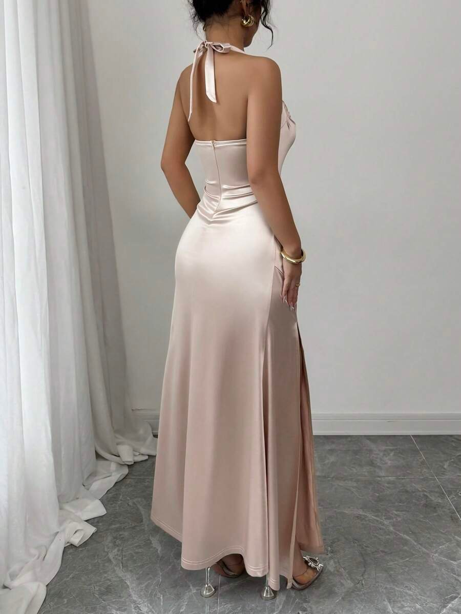 Vestido ajustado de malla con tira cruzada de cuello halter